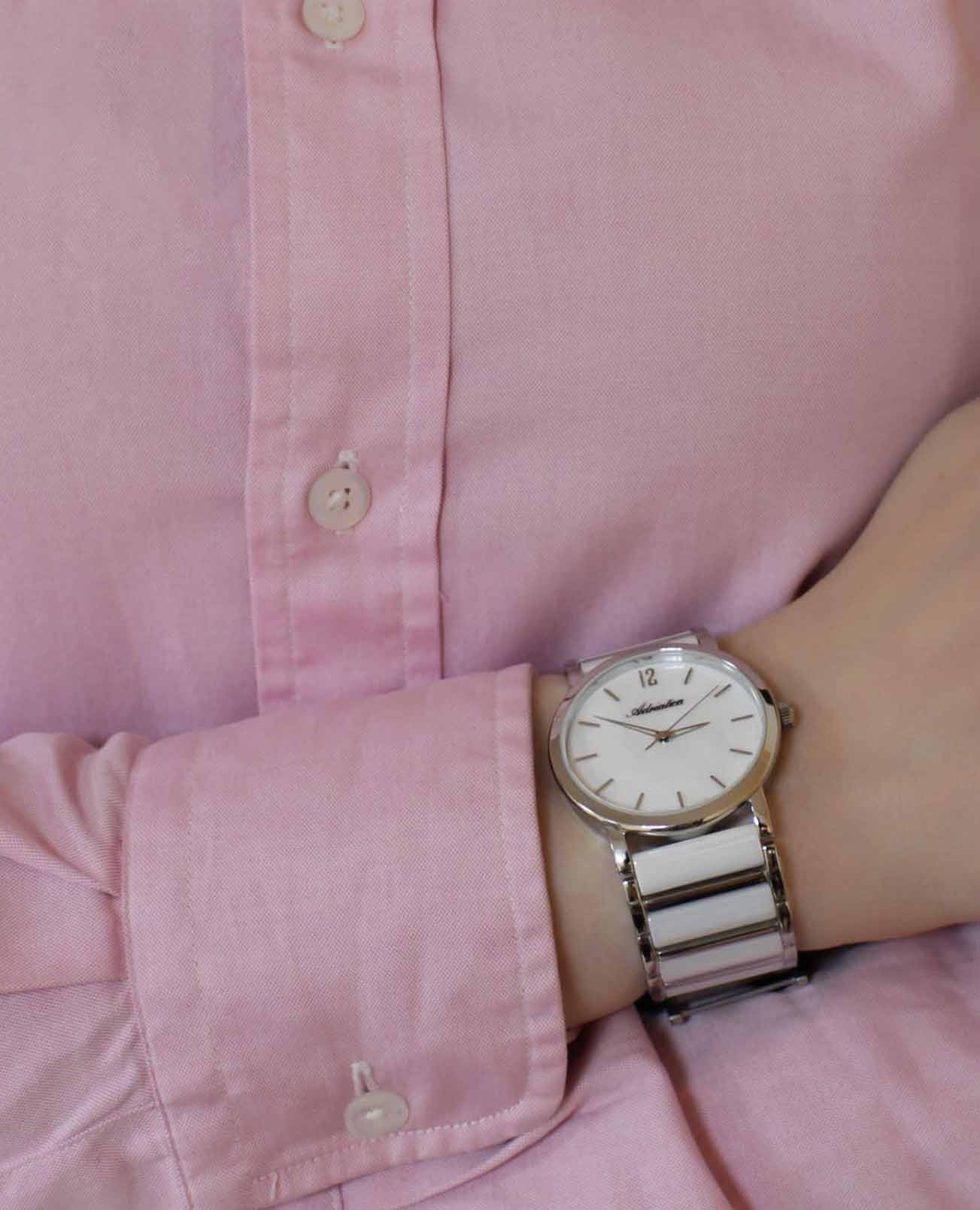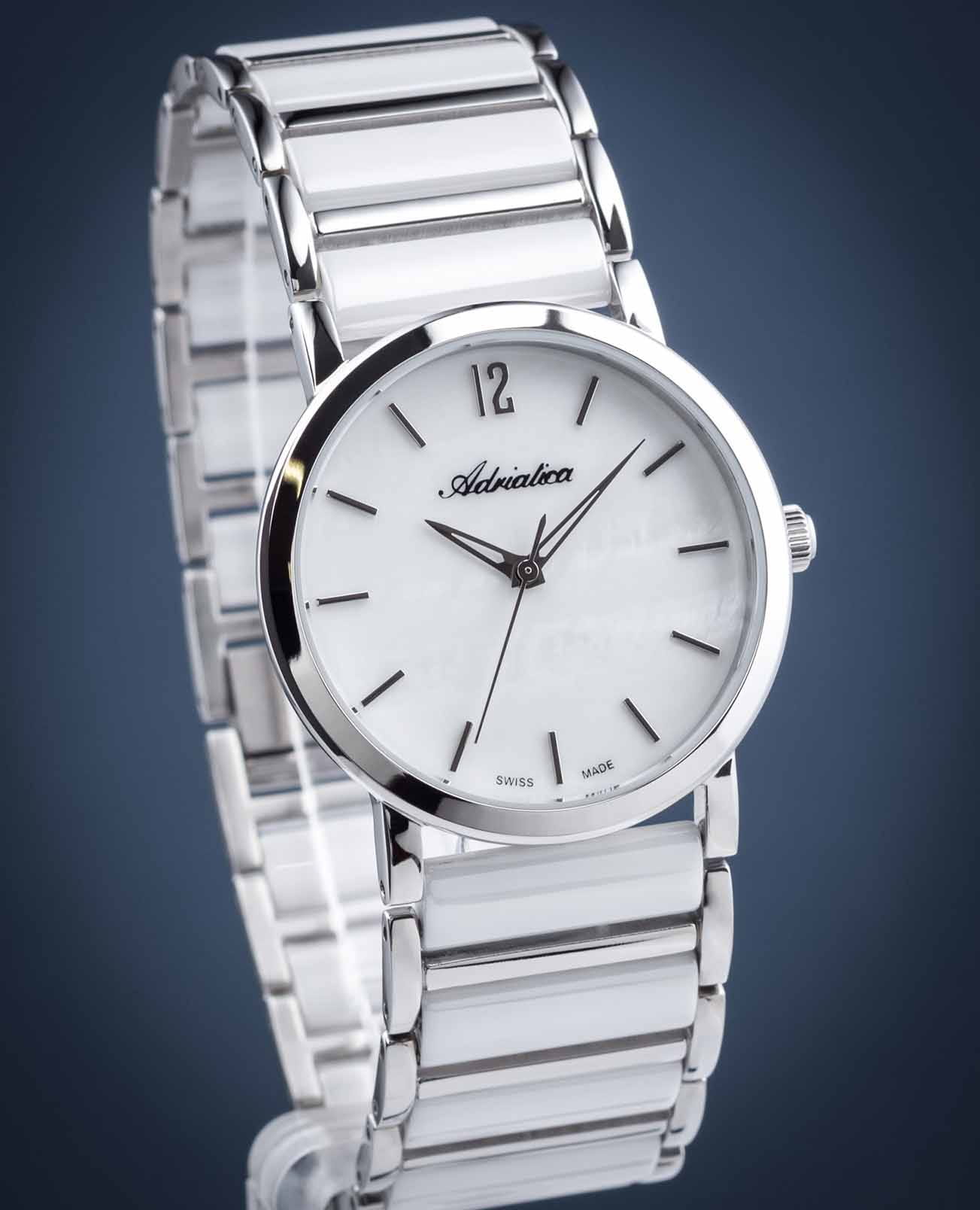Часы Adriatica A3721.C15FQ воплощают в себе утонченную элегантность и надежность, идеально подходящие для современных женщин. Выполненные в Швейцарии, они оснащены высокоточным кварцевым механизмом с калибром RONDA 763, который обеспечивает безупречную точность хода. Корпус из нержавеющей стали диаметром 36 мм и толщиной 7 мм, что придаёт ему утончённый и современный вид. Белый перламутровый корпус защищает минеральное стеклоМинеральное стеклоМинеральное стекло представляет собой искусственно выращенный минерал кварца. Такое стекло отличается особой устойчивостью к повреждениям и царапинам. Уступает по некоторым качествам сапфировому стеклу., придающее часам изысканный вид, а водозащита 3 ATM гарантирует защиту от случайных брызг. Браслет из нержавеющей стали с белыми биокерамическимиБиокерамикаБиокерамика — это материал, который на две трети состоит из керамики, на одну треть — из биопластика. Он сочетает в себе лучшие качества обоих материалов и обладает прочностью и шелковистой на ощупь текстурой. вставками, обеспечивает комфорт и долговечность, а ювелирная застежка добавляет дополнительный штрих к утонченности дизайна. Часы весят всего 80 грамм, что делает их практически невесомыми на запястье, обеспечивая комфорт в течение всего дня. Эти часы станут идеальным дополнением к любому образу, подчеркивая индивидуальный стиль и вкус их обладательницы.