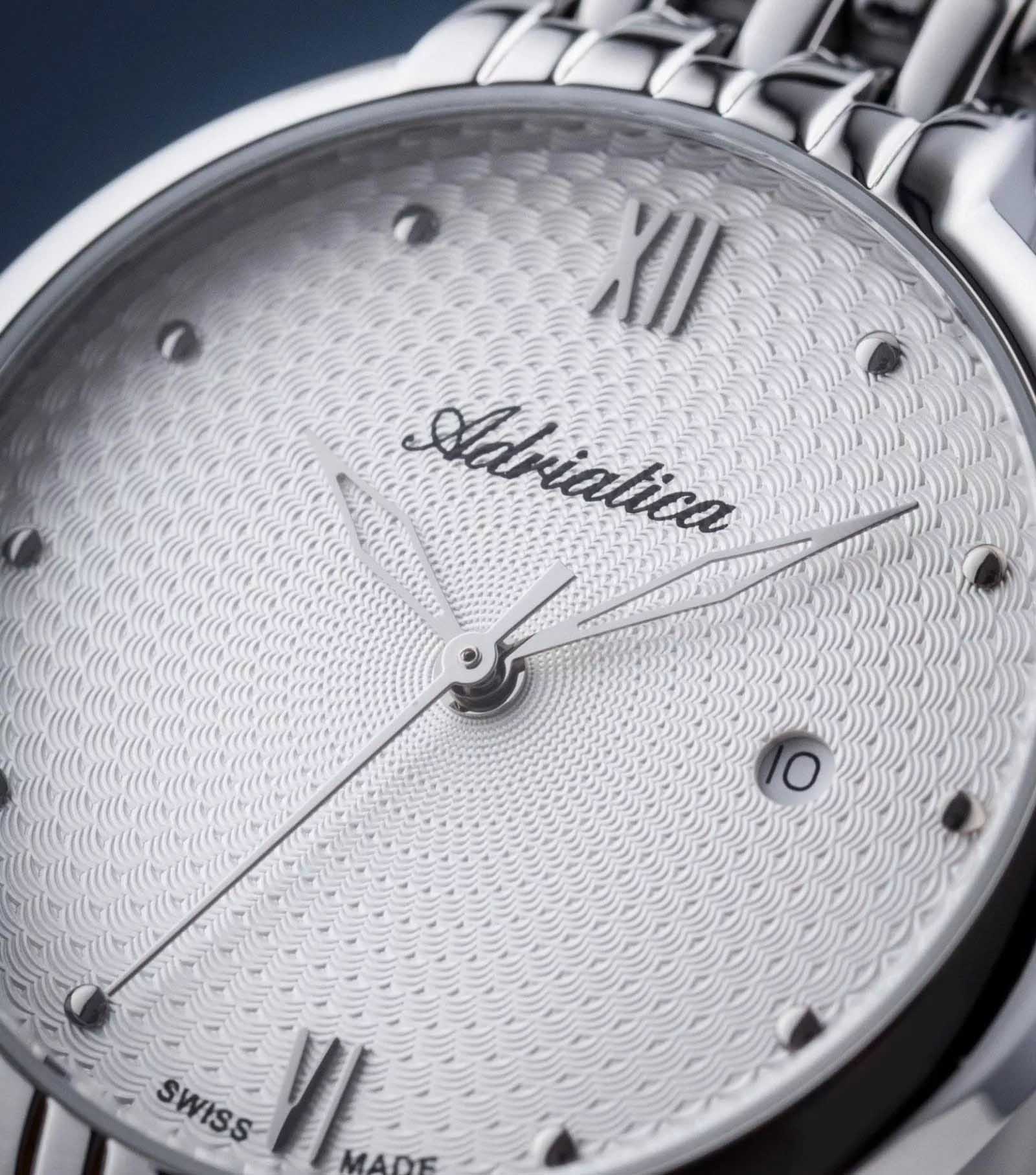 Швейцарские наручные часы Adriatica A3792.5183Q, кварцевый механизм с высокой точностью. Минеральное стеклоМинеральное стеклоМинеральное стекло представляет собой искусственно выращенный минерал кварца. Такое стекло отличается особой устойчивостью к повреждениям и царапинам. Уступает по некоторым качествам сапфировому стеклу. устойчивое к мелким механическим повреждениям. Класс водозащиты: 30 метров, позволит защитить корпус от случайных брызг или капель дождя. Корпус часов изготовлен из стали. Стальной браслет на ювелирной застёжке. Окошко даты находится в положении 3 часа.