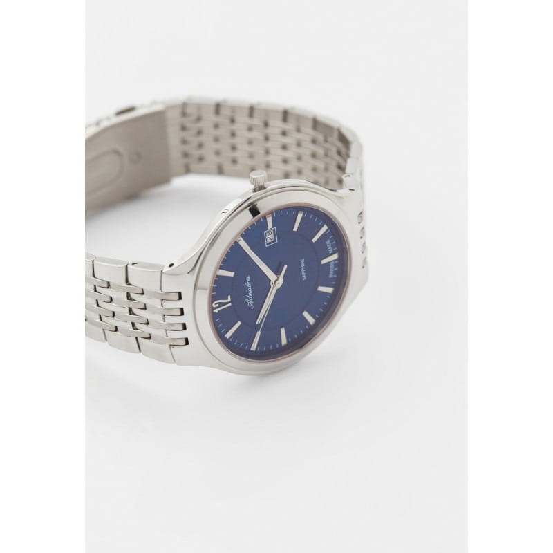 Часы Adriatica A8296.5155Q воплощают в себе элегантность и функциональность, идеально подходящие для современных мужчин, ценящих швейцарское качество. Их синий циферблат, который выполнен по технологии Sunray (солнечные лучи) и защищен сапфировым стекломСапфировое стеклоПрочный и надёжный материал из кристалла сапфира синтетического происхождения, характеризующийся особой твёрдостью и устойчивостью к царапинам и повреждениям., заключен в корпус из нержавеющей стали диаметром 42 мм и толщиной 7 мм. Надежный кварцевый механизм с калибром ETA F06.111 обеспечивает высокую точность, а водозащита 5 ATM делает часы устойчивыми к воздействию воды. Стальной браслет с раскладной застёжкойРаскладная застёжкаТакой тип застёжки используется только на браслетах из металла. Она никогда не раскрывается полностью, происходит разделение на 2 и более частей. Раскладывающая застёжка снизит вероятность потери часов к минимуму. обеспечивает комфортное и надежное ношение. Часы оснащены функцией отображения даты в окошке в положении 3 часа, что добавляет практичности в повседневной жизни. Люминесцентное покрытиеЛюминесцентное покрытиеПозволяет считывать показания времени в темноте. Производители наносят на стрелки, часовые индексы, безель или поверхность циферблата светонакопительный состав, дающий холодное свечение. на стрелках обеспечивает отличную видимость в темноте.