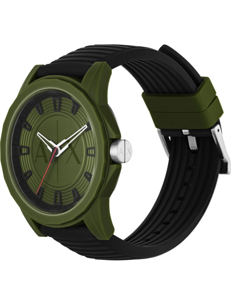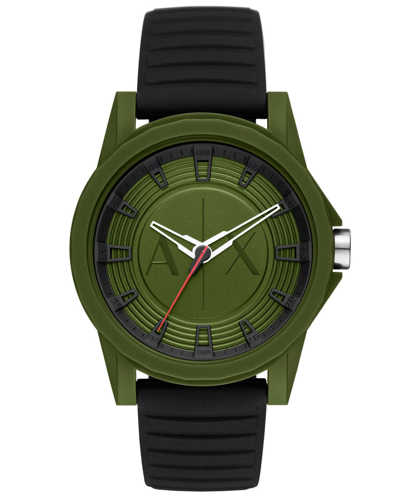 Мужские наручные часы с минеральным стекломМинеральное стеклоМинеральное стекло представляет собой искусственно выращенный минерал кварца. Такое стекло отличается особой устойчивостью к повреждениям и царапинам. Уступает по некоторым качествам сапфировому стеклу. Armani Exchange Outer Banks AX2527, кварцевый механизм с высокой точностью. Класс водозащиты: 30 метров, позволит защитить корпус от случайных брызг или капель дождя. Корпус часов изготовлен из пластика. Метки в виде штрихов. Заводная головка с защитой. Силиконовый ремешок с классической застежкой.