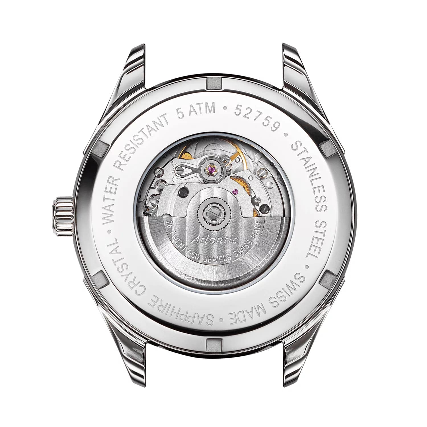 Мужские швейцарские часы c сапфировым стеклом Atlantic 52781.41.21, механический механизм (автоматический калибр) с высокой точностью. Сапфировое стекло устойчивое к появлению царапин, обладающее высокой прозрачностью. Класс водозащиты: 50 метров, позволит защитить корпус от случайных брызг или капель дождя. Корпус часов изготовлен из стали, цвета.