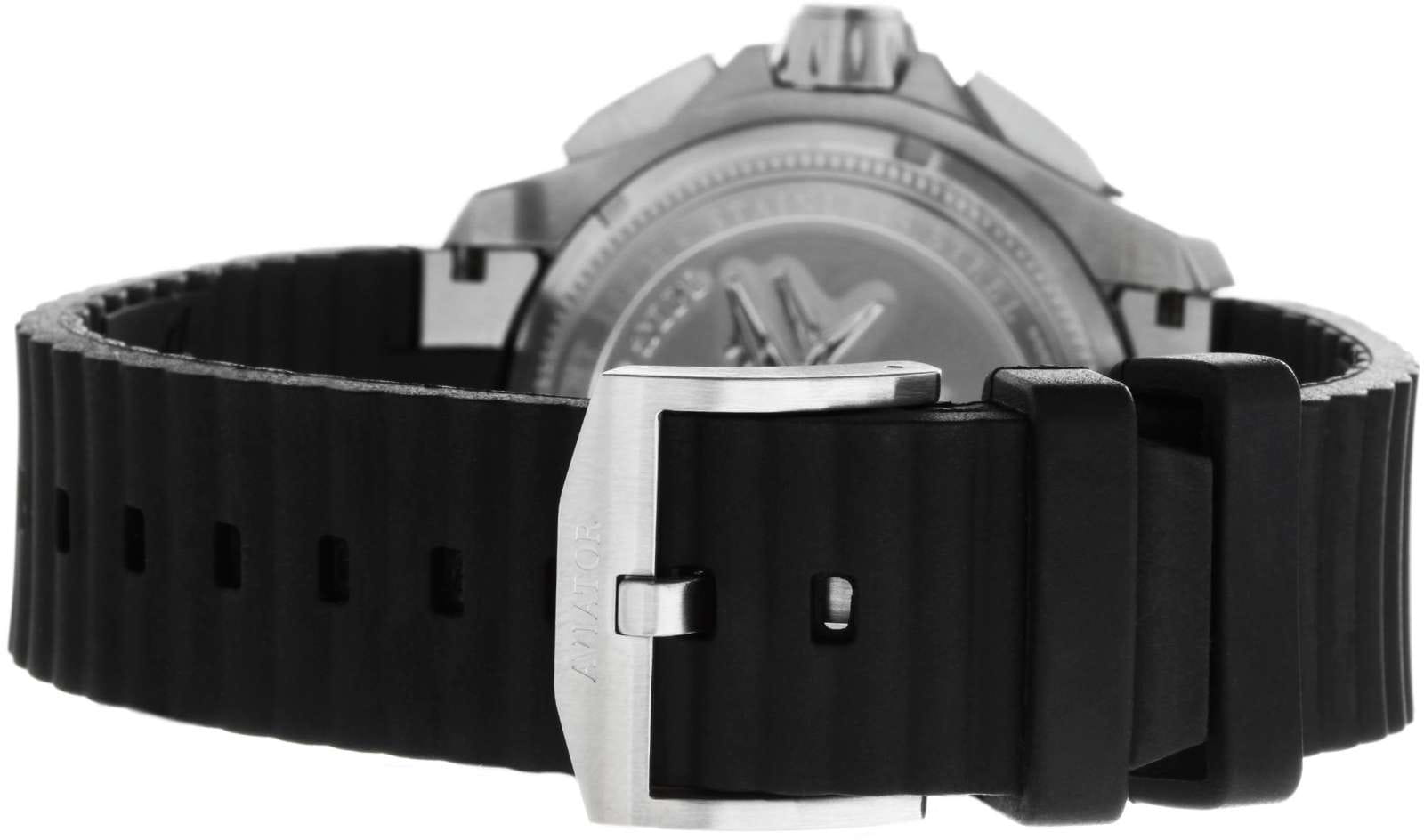 Ремешок из рифлёного чёрного силикона шириной 23 мм с выразительным рельефом напоминает кабели авиационной арматуры. Он оснащён удобной стандартной застежкой — для быстрого и надёжного снятия. Модель обладает ударопрочным корпусом, позволяющим ей сохранять функциональность в течение всего срока службы.