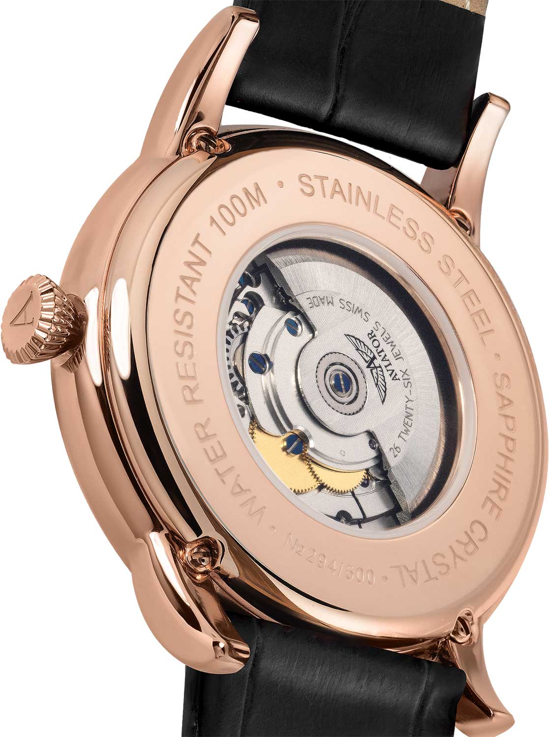 Механизм — автоматический с функцией автоподзавода, ручной подзаводки, остановки секундной стрелки и функцией Day-Date. Запас хода составляет около 38 часов. Все функции настраиваются через заводную головку.