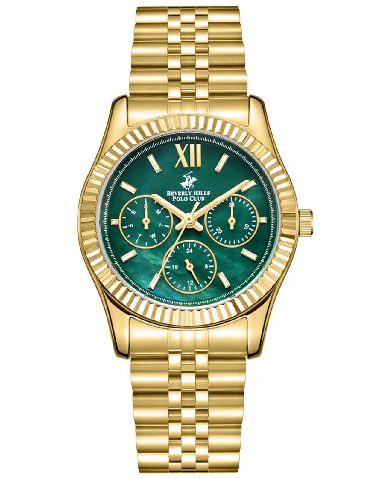 Beverly Hills Polo Club BP3169C.170 — женские часы, сочетающие изящество и функциональность в компактном формате. Корпус из суперметалла диаметром 34 мм и браслет украшены IP‑покрытиемIP-покрытиеМетод ионного напыления. Демонстрирует повышенную устойчивость к истиранию, окислению и химическим веществам. Под воздействием высокого давления и температуры около 1500°C молекулы металла надёжно соединяются с частицами корпуса часов. золотого оттенка, создавая благородный двуцветный дизайн. Циферблат украшен тремя субциферблатами — индикаторы даты, дня недели и 24‑часового формата — что придаёт модели утончённую многозадачность. Стрелки и метки выполнены в золоте, подчёркивая элегантность и визуальную лёгкость. Механизм — точный кварцевый, надёжный и неприхотливый, требующий только замены батареи раз в 1–2 года . Циферблат покрыт прочным минеральным стекломМинеральное стеклоМинеральное стекло представляет собой искусственно выращенный минерал кварца. Такое стекло отличается особой устойчивостью к повреждениям и царапинам. Уступает по некоторым качествам сапфировому стеклу., устойчивым к царапинам и сохраняющим безупречный внешний вид . Браслет на раскладной застёжкеРаскладная застёжкаТакой тип застёжки используется только на браслетах из металла. Она никогда не раскрывается полностью, происходит разделение на 2 и более частей. Раскладывающая застёжка снизит вероятность потери часов к минимуму., обеспечивая плавное и надёжное прилегание. Водозащита на уровне 3 ATM (≈30 м) защищает от брызг и случайных осадков . Beverly Hills Polo Club — утончённый аксессуар для женщин, ценящих стиль, надёжность и изысканные детали, где каждая функция подчёркнута строгой, но изящной эстетикой.