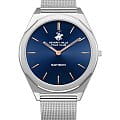 Американские часы Beverly Hills Polo Club BP3710X.390, кварцевый механизм с высокой точностью. Класс водозащиты: 50 метров, позволит защитить корпус от случайных брызг или капель дождя. Корпус часов изготовлен из нержавеющей стали. Стальной браслет миланского плетения на раскладном замкеРаскладной замокДанный вариант застежки используется только на часах с металлическим браслетом. Отличительная особенность такого крепления в том, что длина браслета становится универсальной и вы можете самостоятельно отрегулировать нужный вам размер – застежка просто двигается по браслету часов.. Минеральное стеклоМинеральное стеклоМинеральное стекло представляет собой искусственно выращенный минерал кварца. Такое стекло отличается особой устойчивостью к повреждениям и царапинам. Уступает по некоторым качествам сапфировому стеклу. устойчивое к мелким механическим повреждениям.
