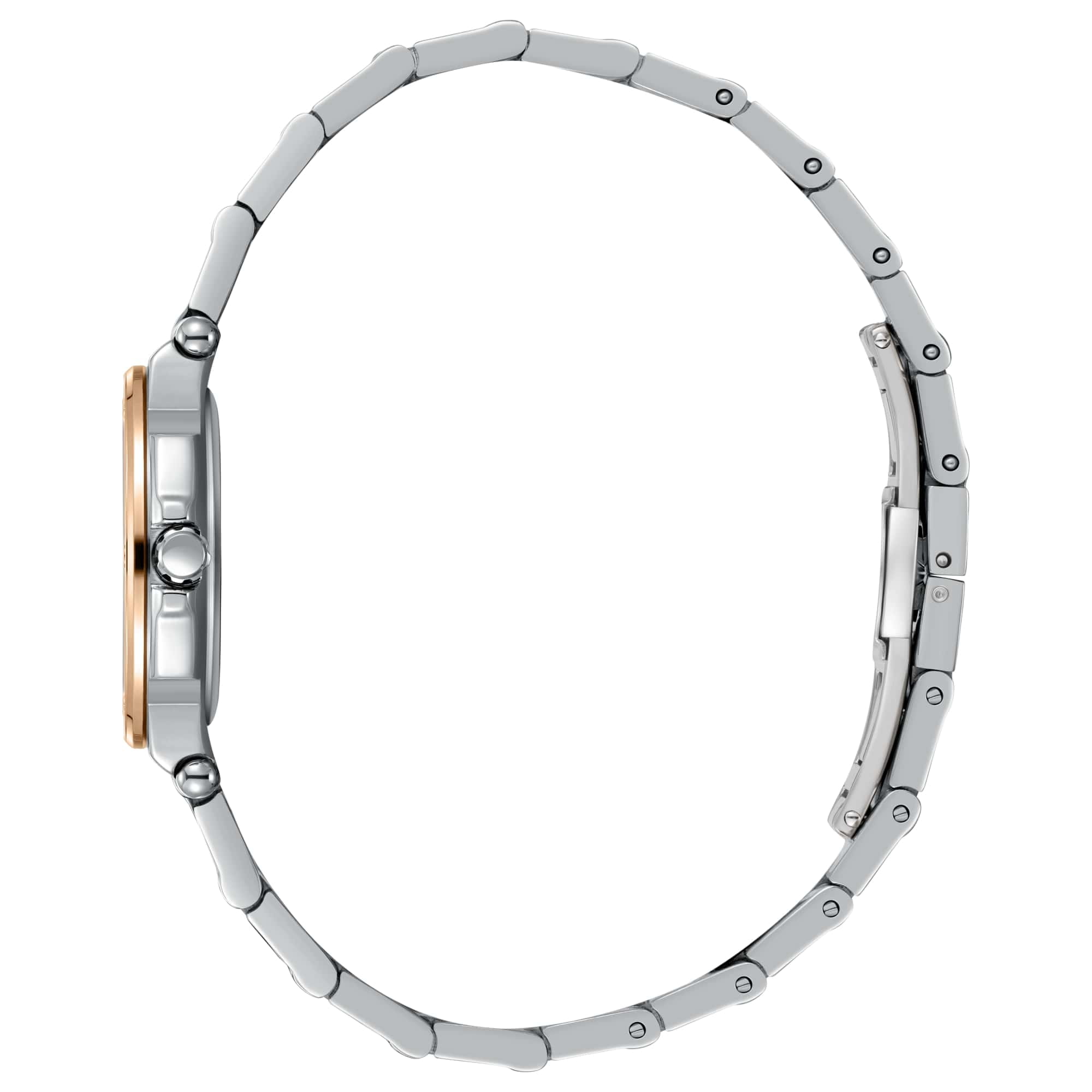 Стальной браслет с частичным IP-покрытиемIP-покрытиеМетод ионного напыления. Демонстрирует повышенную устойчивость к истиранию, окислению и химическим веществам. Под воздействием высокого давления и температуры около 1500°C молекулы металла надёжно соединяются с частицами корпуса часов. на застёжке-бабочке с кнопкамиЗастёжка "бабочка"Такой вид застёжки дополняется предохранителями, помогающими избежать случайного раскрытия браслета. Обладают изящным исполнением. . Часы обладают водозащитой до 30 метров, позволит защитить корпус от случайных брызг или капель дождя. Синтетический бриллиант придает часам неповторимый шарм и изысканность.