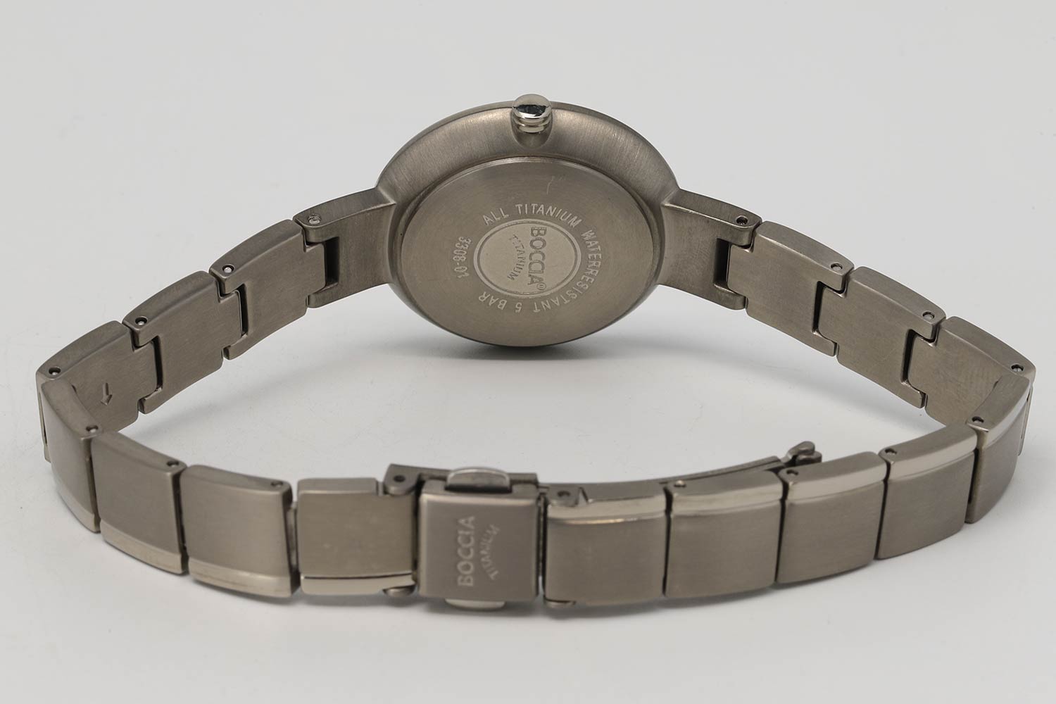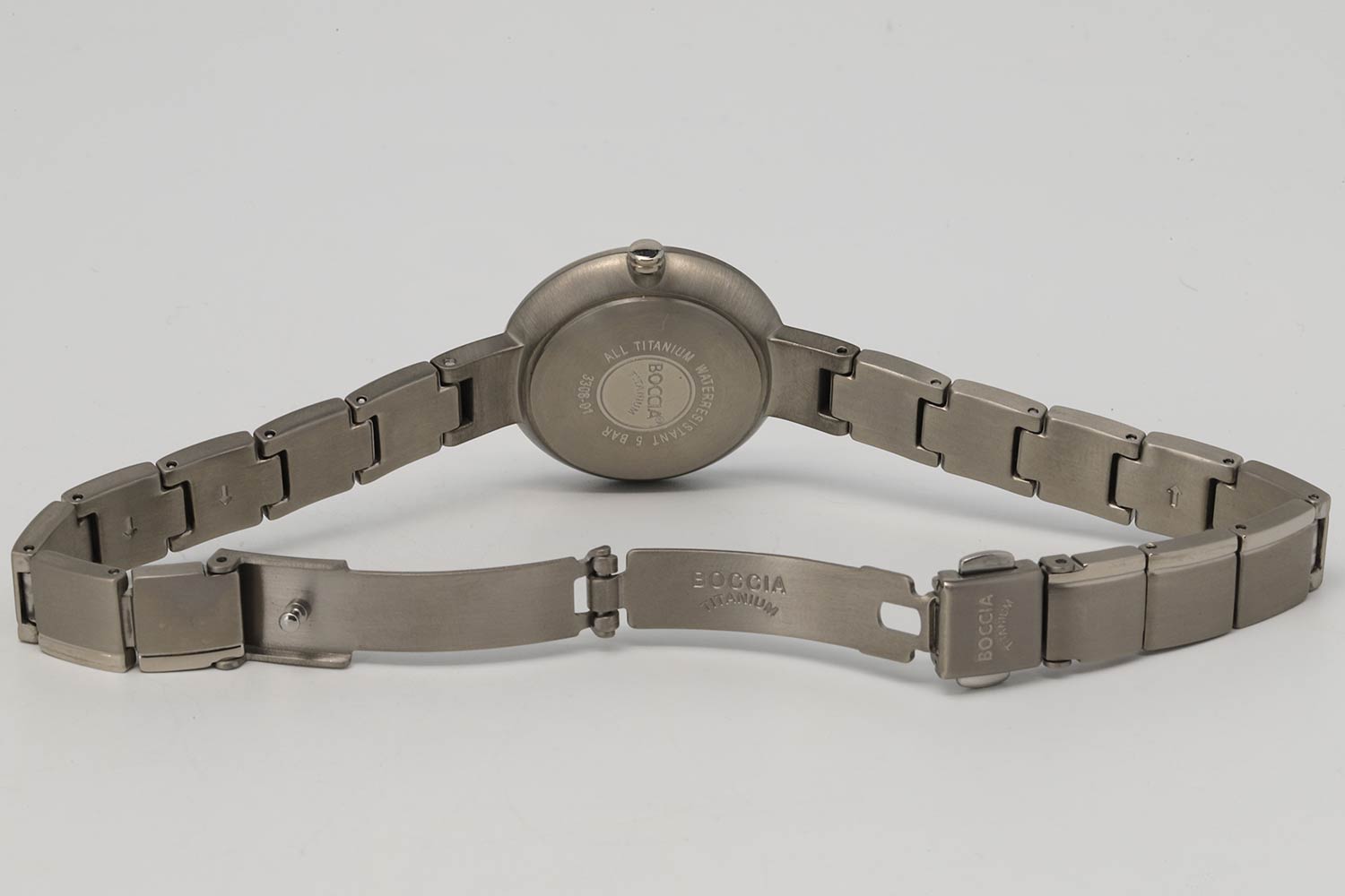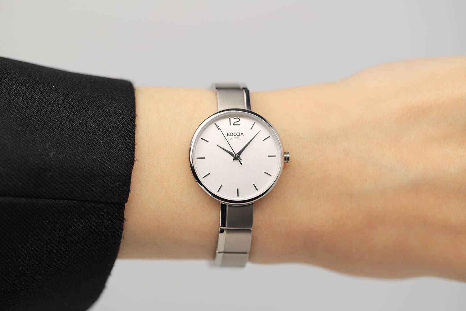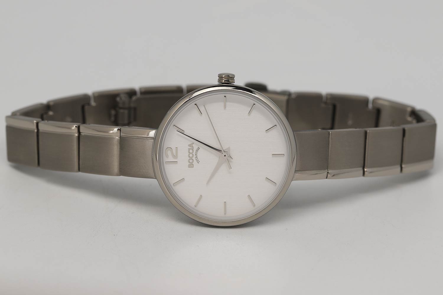 Женские немецкие титановые часы Boccia Titanium 3308-01, кварцевый механизм с высокой точностью. Класс водозащиты: 50 метров, позволит защитить корпус от случайных брызг или капель дождя. Корпус часов изготовлен из стали, цвета.