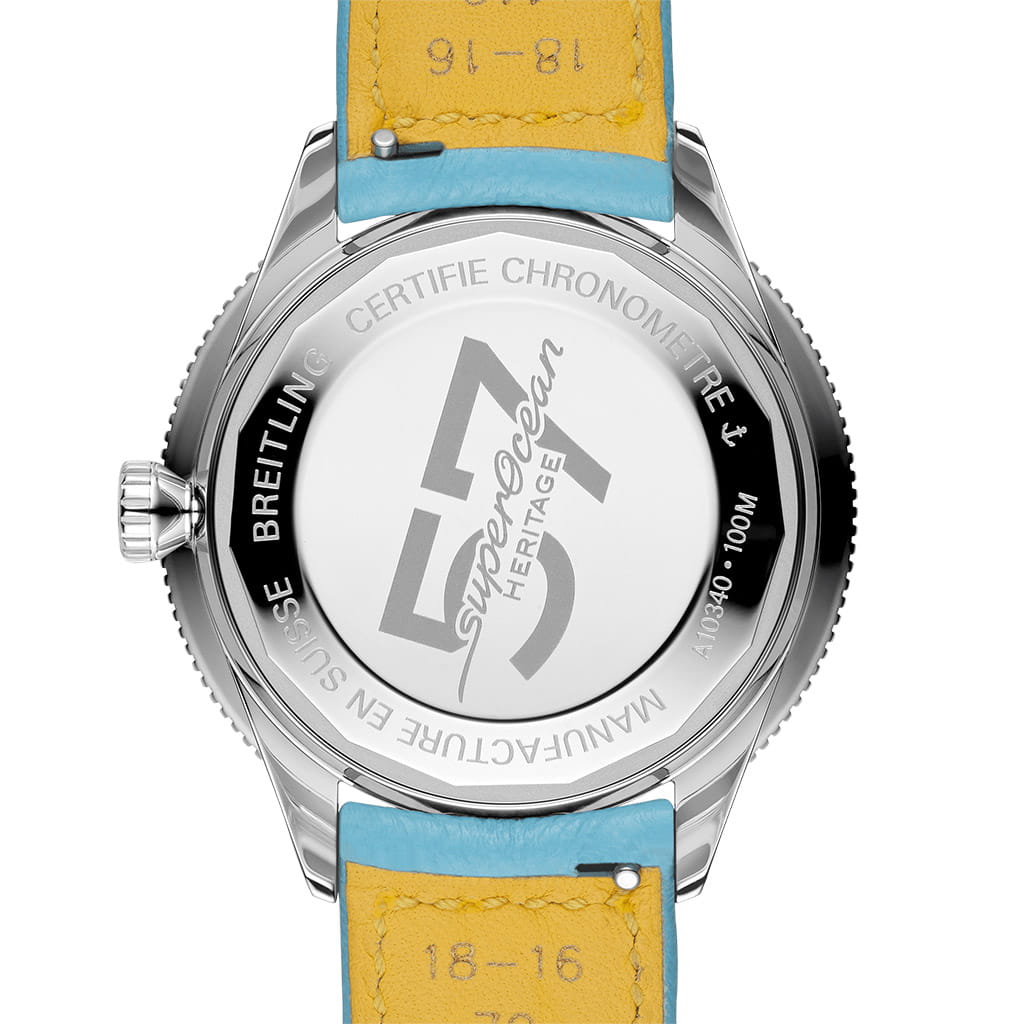 Красочная дань уважения часовой компании Breitling оригинальной модели SuperOcean и воплощение пляжного стиля. В капсульной коллекции Superocean Heritage ’57 Pastel Paradise использованы некоторые элементы дизайна первой модели SuperOcean 1957 года выпуска, такие как вогнутый керамический безель, крупные индексы и часовая стрелка в форме стрелы.