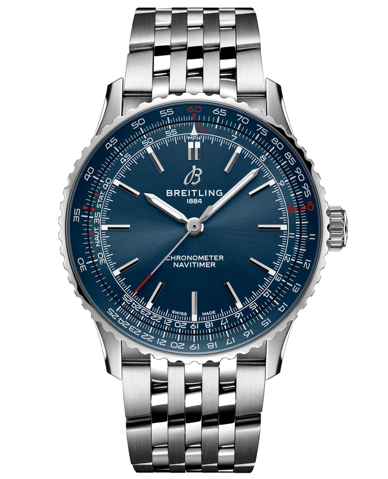 Мужские швейцарские часы-хронометр Breitling Navitimer Automatic 41 A17329161C1A1, механический механизм (автоматический калибр) с высокой точностью. Сапфировое стеклоСапфировое стеклоПрочный и надёжный материал из кристалла сапфира синтетического происхождения, характеризующийся особой твёрдостью и устойчивостью к царапинам и повреждениям. устойчивое к появлению царапин, обладающее высокой прозрачностью. Класс водозащиты: 30 метров, позволит защитить корпус от случайных брызг или капель дождя. Корпус часов изготовлен из нержавеющей стали. Стальной браслет с застёжкой-бабочкой с кнопкамиЗастёжка "бабочка"Такой вид застёжки дополняется предохранителями, помогающими избежать случайного раскрытия браслета. Обладают изящным исполнением. . Шкала тахиметраТахиметрРазмеченная шкала, располагается на ободке или безеле часов. Тахиметр позволяет рассчитать скорость на определённом участке пути, расстояние измеряется в километрах или милях. на циферблате. Стрелки и метки с люминесцентным покрытиемЛюминесцентное покрытиеПозволяет считывать показания времени в темноте. Производители наносят на стрелки, часовые индексы, безель или поверхность циферблата светонакопительный состав, дающий холодное свечение..