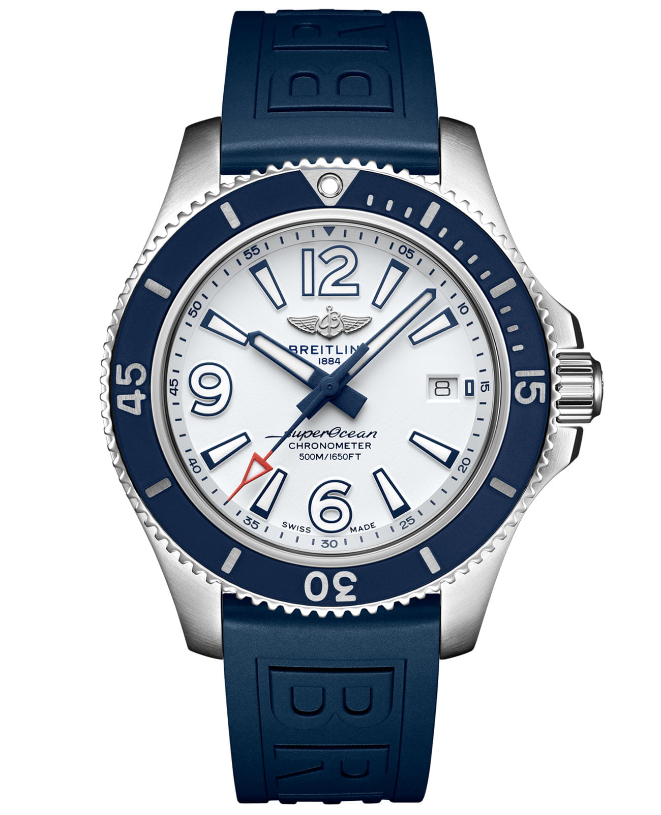 Современная, спортивная и яркая модель Superocean Automatic 42 совмещает в себе прекрасные технические характеристики с современным дизайном – она изящно выглядит на любом запястье. Эти часы не боятся ничего: в них можно погружаться под воду, заниматься серфингом или делать заплывы!