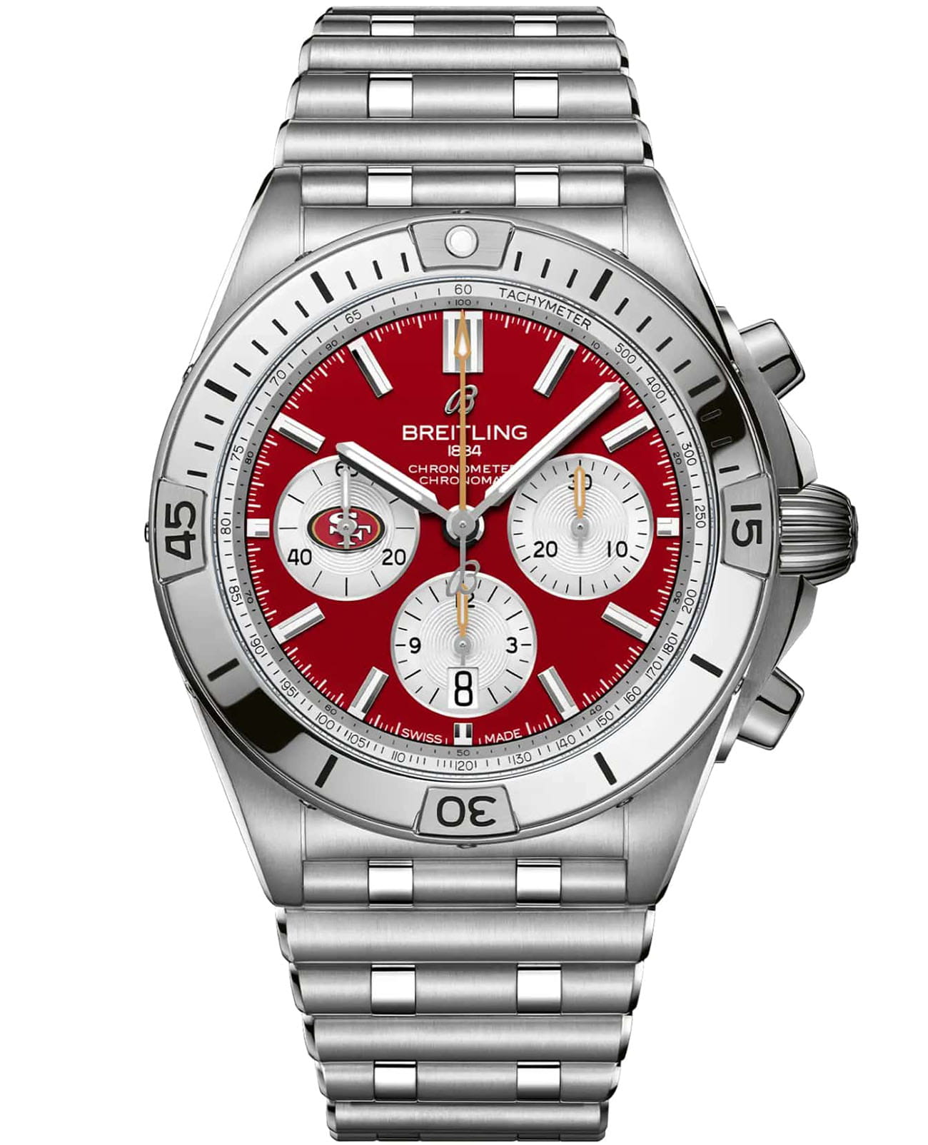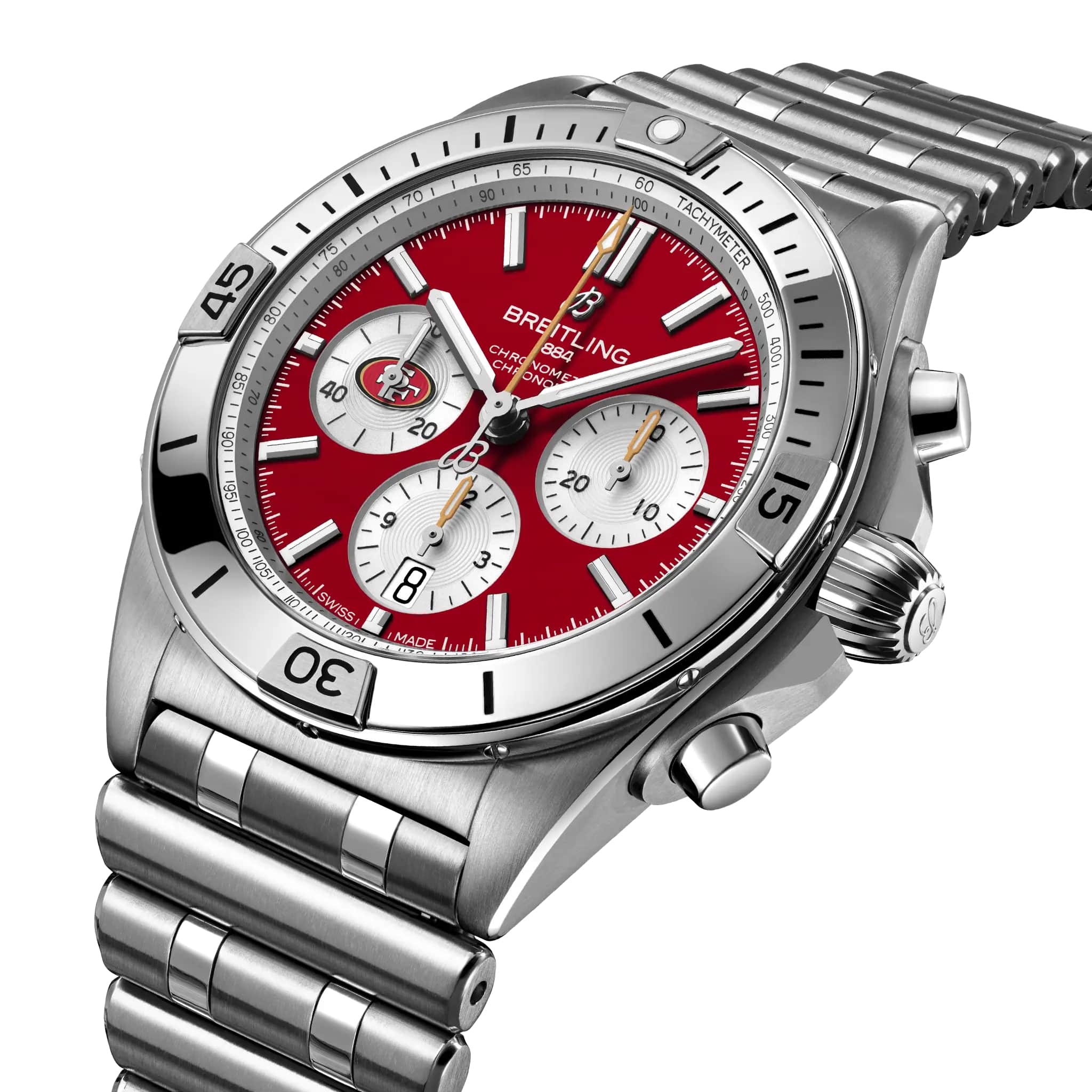 Швейцарские мужские механические часы Breitling Chronomat B01 42 NFL San Francisco 49ers Edition AB01342B1K1A1 с хронографом