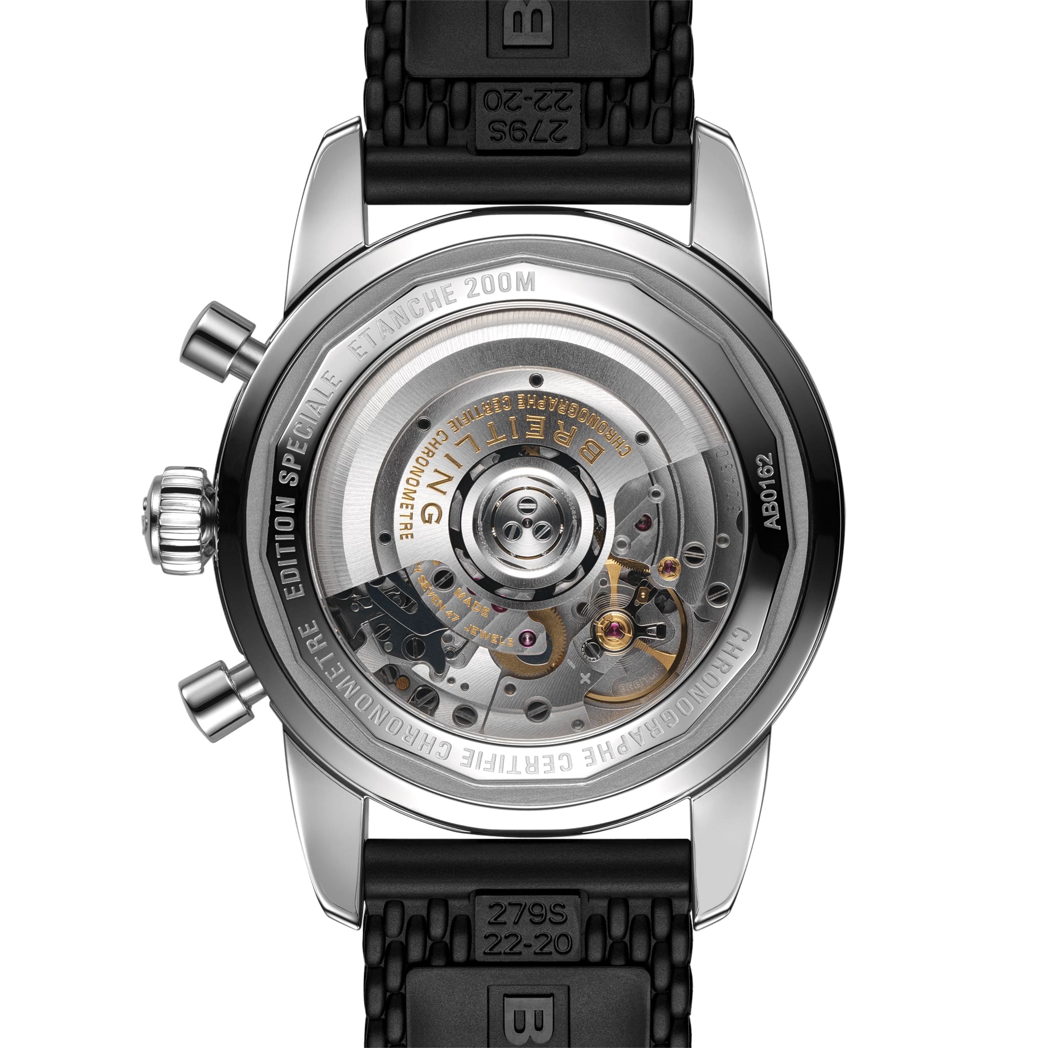 Покупатель может выбрать одну из понравившихся ему версий с циферблатом черного, синего, серебристого или зеленого цвета. Модель предлагается в комплекте с плетеным браслетом или каучуковым ремешком с узором в виде плетения с раскладной застежкой. Внутри корпуса спрятан калибр собственной разработки Breitling Manufacture Caliber 01, сертифицированный Швейцарским институтом официального тестирования хронометров (COSC).