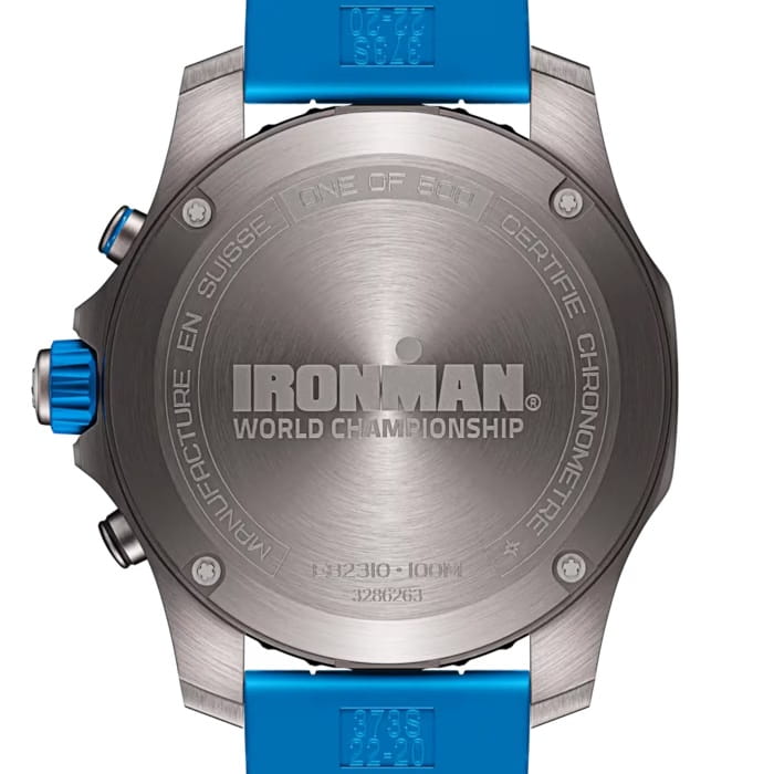Мужские кварцевые часы Breitling Professional Pro IRONMAN® World Championship 2025 E823105A1M1S1 — это инновационный аксессуар, разработанный для спортсменов и активных людей, выпущен ограниченным тиражом в 500 экземпляров. Модель выполнена из титана — прочного материала, который на 43 % легче нержавеющей стали. Циферблат защищен сапфировым стекломСапфировое стеклоПрочный и надёжный материал из кристалла сапфира синтетического происхождения, характеризующийся особой твёрдостью и устойчивостью к царапинам и повреждениям. с двусторонним антибликовым покрытиемАнтибликовое покрытиеСлой оксида металла в 0,13-0,3 микрон, благодаря которому стекло часов не бликует и не отражает свет. Антибликовое покрытие уменьшает отражение света в 10 раз, обеспечивая отличную читаемость показателей циферблата., устойчивым к повреждениям, а также дополнен вращающимся безелемБезельВнешний ободок, закрепляющий стекло. В спортивных часах так называется поворотное кольцо с делениями на циферблате, выполняет роль таймера – замеряет отрезки времени на шкале. Неподвижный безель – элемент декора. Однонаправленно вращающийся безель на дайверских часах позволяет фиксировать моменты погружения и выныривания на поверхность.. Стрелки и метки имеют люминесцентное покрытиеЛюминесцентное покрытиеПозволяет считывать показания времени в темноте. Производители наносят на стрелки, часовые индексы, безель или поверхность циферблата светонакопительный состав, дающий холодное свечение.. Часы оснащены термоустойчивым механизмом SuperQuartz™ (калибр Breitling 82), сертификатом COSCСертификат COSCОфициальный сертификат, подтверждающий то, что часы ходят с особо высокой точностью. Для получения документа часы подвергаются тестовым испытаниям, разработанным швейцарским институтом тестирования хронометров COSC. Допустимая норма для механических часов -4/+6 секунд в день, для кварцевых моделей +/- 0,07 секунд в день., обеспечивающим исключительную точность. Функции включают отображение времени, секундомер с точностью 1/10 секунды и временем измерения до 30 минут, а также апертура даты на циферблате, хронографХронографФункция позволяет измерять отрезки времени с особой точностью: часы, минуты, секунды. Верным признаком хронографа является наличие на циферблате 3 дополнительных окошек-счётчиков., шкалой пульсометра и солнечным компасом. Водонепроницаемость позволяет использовать модель при плавании и других водных активностях без глубокого погружения. Ремешок из каучука шириной 22 мм оснащён из нержавеющей стали, обеспечивающей комфорт и надёжную фиксацию на запястье. Вес изделия составляет 101,15 г, а диаметр корпуса — 44 мм. Эти часы станут универсальным аксессуаром для тех, кто ценит сочетание стиля, функциональности и надёжности — идеальный выбор для повседневной носки и активного образа жизни.