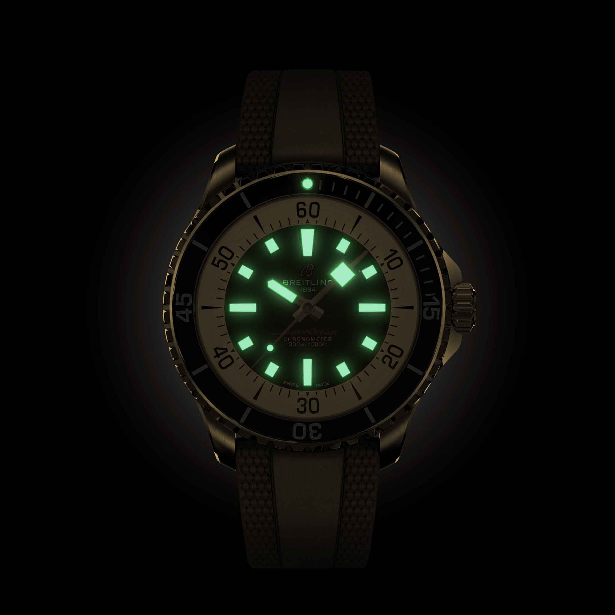 Мужские водонепроницаемые швейцарские часы Breitling Superocean Automatic 44 N17376201Q1S1, механический механизм (автоматический калибр) с высокой точностью. Сапфировое стеклоСапфировое стеклоПрочный и надёжный материал из кристалла сапфира синтетического происхождения, характеризующийся особой твёрдостью и устойчивостью к царапинам и повреждениям. устойчивое к появлению царапин, обладающее высокой прозрачностью. Класс водозащиты: 300 метров, позволит плавать, нырять и заниматься другими водными видами спорта. Корпус часов изготовлен из бронзы. В бронзовой версии используется специальный сплав, который обладает превосходной устойчивостью к коррозии, но со временем все равно образует тонкую патину, что делает часы еще более уникальными. Силиконовый ремешок с раскладной застёжкойРаскладная застёжкаТакой тип застёжки используется только на браслетах из металла. Она никогда не раскрывается полностью, происходит разделение на 2 и более частей. Раскладывающая застёжка снизит вероятность потери часов к минимуму.. Вращающийся безельБезельВнешний ободок, закрепляющий стекло. В спортивных часах так называется поворотное кольцо с делениями на циферблате, выполняет роль таймера – замеряет отрезки времени на шкале. Неподвижный безель – элемент декора. Однонаправленно вращающийся безель на дайверских часах позволяет фиксировать моменты погружения и выныривания на поверхность. из нержавеющей стали и керамики с люминесцентным покрытиемЛюминесцентное покрытиеПозволяет считывать показания времени в темноте. Производители наносят на стрелки, часовые индексы, безель или поверхность циферблата светонакопительный состав, дающий холодное свечение. Superluminova. Лучше всего то, что это больше не просто часы для дайвинга — занимайтесь с ними серфингом, плавайте с ними, заходите с ними в пляжный бар, а затем надевайте их на ужин. Superocean идеально сочетает ностальгию по своему наследию со свежим внешним видом.