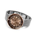. Сапфировое стеклоСапфировое стеклоПрочный и надёжный материал из кристалла сапфира синтетического происхождения, характеризующийся особой твёрдостью и устойчивостью к царапинам и повреждениям., выпуклое с обеих сторон, внутреннее антибликовое покрытие. Стальной браслет миланского плетения на застёжке-бабочке с кнопкамиЗастёжка "бабочка"Такой вид застёжки дополняется предохранителями, помогающими избежать случайного раскрытия браслета. Обладают изящным исполнением. . Водозащита: 100 метров, позволит плавать, нырять и заниматься другими водными видами спорта. Поворотный керамический безельБезельВнешний ободок, закрепляющий стекло. В спортивных часах так называется поворотное кольцо с делениями на циферблате, выполняет роль таймера – замеряет отрезки времени на шкале. Неподвижный безель – элемент декора. Однонаправленно вращающийся безель на дайверских часах позволяет фиксировать моменты погружения и выныривания на поверхность..