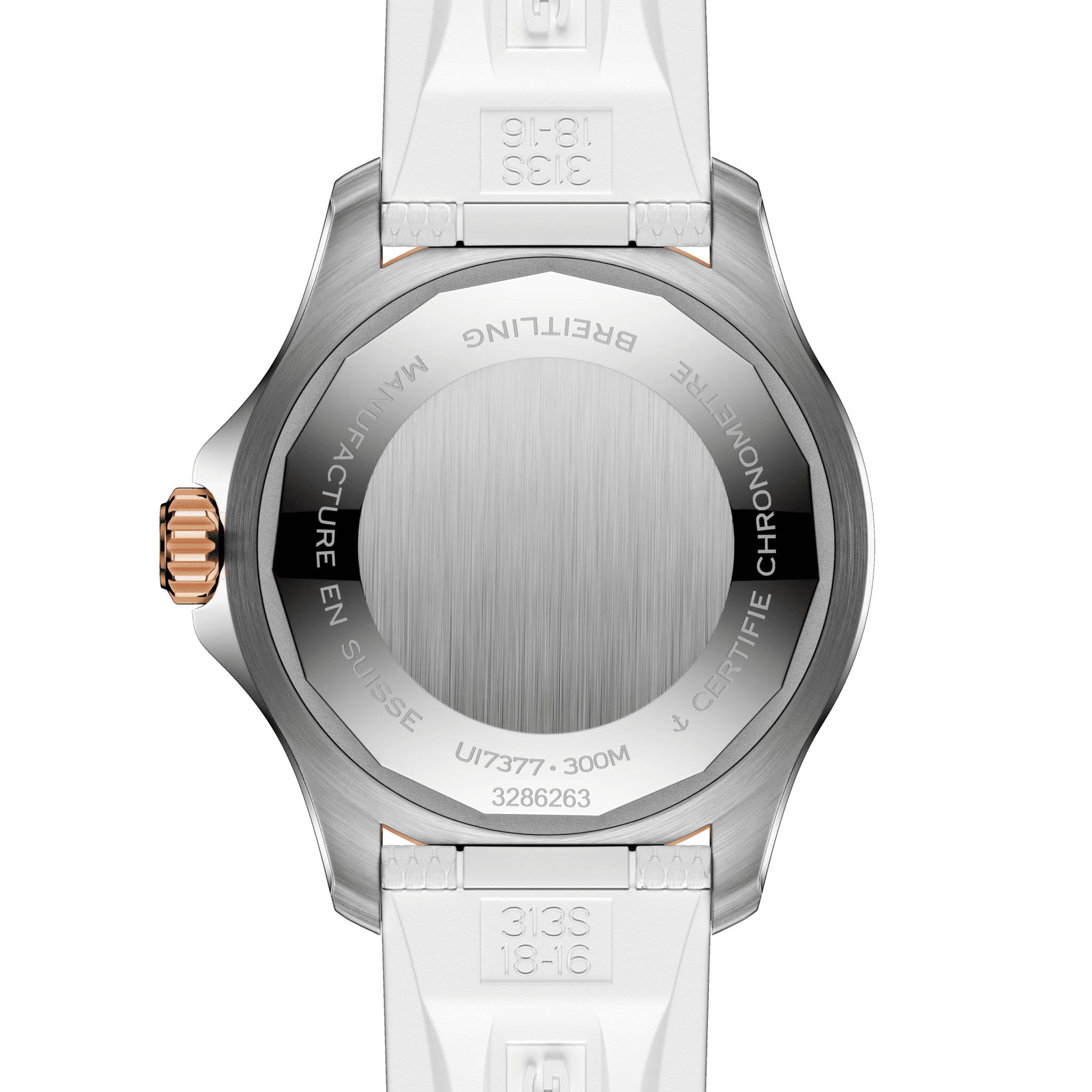 Унисекс водонепроницаемые швейцарские часы Breitling Superocean Automatic 36 U17377211A1S1, механический механизм (автоматический калибр) с высокой точностью. Сапфировое стеклоСапфировое стеклоПрочный и надёжный материал из кристалла сапфира синтетического происхождения, характеризующийся особой твёрдостью и устойчивостью к царапинам и повреждениям. устойчивое к появлению царапин, обладающее высокой прозрачностью. Класс водозащиты: 300 метров, позволит плавать, нырять и заниматься другими водными видами спорта. Корпус часов изготовлен из нержавеющей стали и из 18-каратного золота18-каратное золотоОбозначение по каратной системе пробирования, оно показывает, сколько драгоценного металла содержится в изделии. 18 карат - в составе 75% чистого золота, соответствует 750 пробе.