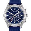 Мужские кварцевые часы-хронографХронографФункция позволяет измерять отрезки времени с особой точностью: часы, минуты, секунды. Верным признаком хронографа является наличие на циферблате 3 дополнительных окошек-счётчиков. Bulova Classic 96K103 – отражающий идеальное сочетание современного дизайна, надёжности и функциональности. Элегантный облик станет превосходным завершением образа, наделив его индивидуальным характером. Корпус из нержавеющей стали диаметром 42 мм идеально сбалансирован и элегантен. Минеральное стеклоМинеральное стеклоМинеральное стекло представляет собой искусственно выращенный минерал кварца. Такое стекло отличается особой устойчивостью к повреждениям и царапинам. Уступает по некоторым качествам сапфировому стеклу. защищает циферблат от царапин и устойчивое к мелким механическим повреждениям.Силиконовый ремешок синего цвета на стандартной застежке обеспечивает комфортное ношение. Стрелки и метки с люминесцентным покрытиемЛюминесцентное покрытиеПозволяет считывать показания времени в темноте. Производители наносят на стрелки, часовые индексы, безель или поверхность циферблата светонакопительный состав, дающий холодное свечение. позволяющие легко определять время даже в темноте. Водозащита 100 метров, позволит плавать, нырять и заниматься другими водными видами спорта. Эта модель – отличный выбор для тех, кто ищет сочетание стиля, качества и функциональности. Часы станут не только полезным аксессуаром, но и выразительным элементом вашего имиджа.