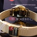 Стильным элементом стал стальной браслет плетения Mesh. Привлекательно выглядит игра оттенков серебристого циферблата «солнечные лучи» и PVD-покрытияPVDУльтратонкое покрытие наносится в технике вакуумного напыления, сочетает в себе нитрид титана особой прочности со слоем золота или оксида хрома. Несёт в себе декоративную или защитную функцию. золотистого цвета. Швейцарский кварцевый калибр от ETA. Минеральное стекло. Водонепроницаемость до 3 бар.