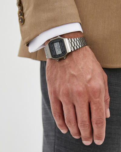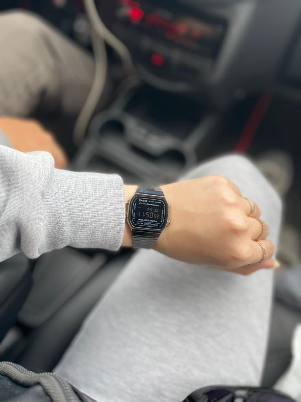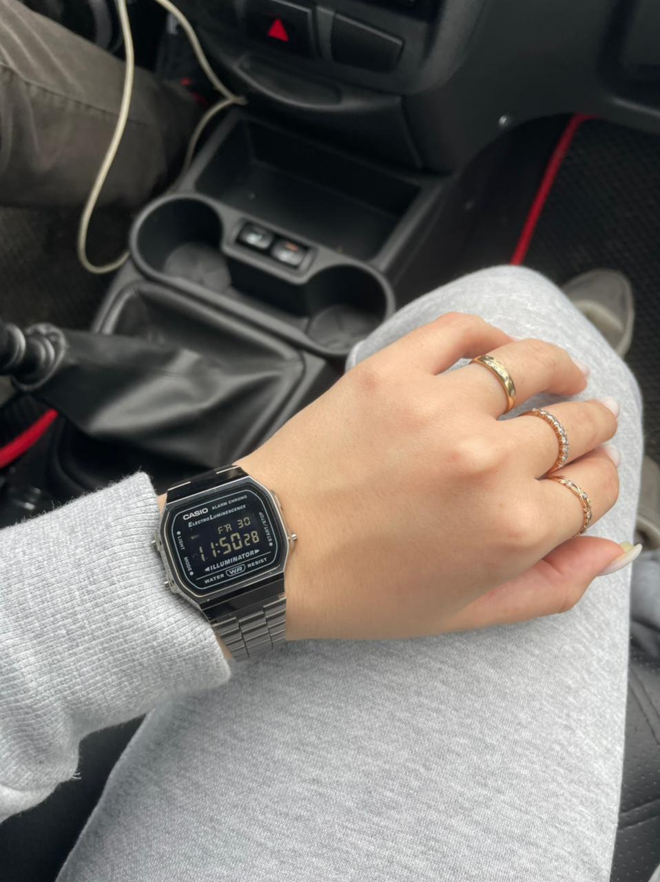 Минимальный набор необходимых функций (текущее время, будильник, секундомер). Присутствует небольшая влагоустойчивость, которая позволит не беспокоиться при попадании воды на часы.
