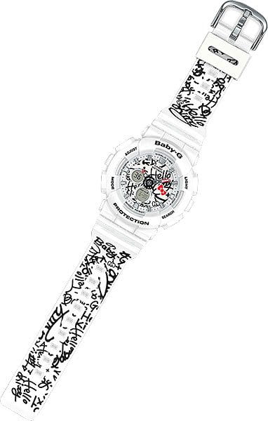 Baby-G Hello Kitty Limited Models. Еще одна коллаборация: BABY-G совместно с HELLO KITTY выпускают ограниченную серию часов, сочетающих классический узнаваемый корпус и яркий дизайн в стиле граффити 70-х годов прошлого столетия. Свобода в выборе и самовыражении, дух улиц и бунтарство - отличительные черты владелицы этих часов. Светодиодная подсветка с функцией автоматической подсветки при наклоне часов. Функция секундомера. Таймер обратного отсчета. 5 ежедневных будильников. Автоматический календарь. Функция мирового времени. Отображение времени в 12-часовом или 24-часовом формате. Особая ударопрочная конструкция защищает от ударов и вибрации. Минеральное стекло устойчивое к возникновению царапин. Ремешок из полимерного материала. Натуральный полимерный материал является идеальным для изготовления ремешка благодаря своей чрезвычайной прочности и гибкости. Корпус выполнен из высококачественного пластика. Задняя крышка стальная. Водонепроницаемость (10 Бар).