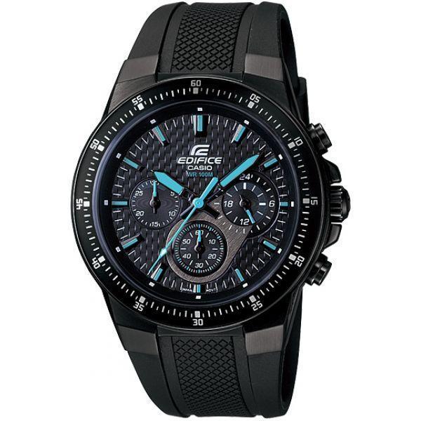 Стильный мужские наручные часы Casio Edifice надежные и практичные. Кварцевый японский механизм Miyota. Точность хода не хуже -10 +15 сек./в месяц. Часы оснащены функцией хронографа. Циферблат черного цвета с синими стрелками и индексами. Стрелки и индексы с светонакопительным нанесением. Корпус выполнен из высококачественной стали с антикоррозийными свойствами с IP покрытием чёрного цвета. Ремешок из полимерного пластика. Натуральный полимерный материал является идеальным для изготовления ремешка благодаря своей чрезвычайной прочности и гибкости. Минеральное стекло устойчиво к появлению царапин. Водонепроницаемость 100М. В часах можно плавать.
