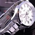 Классические японские наручные кварцевые мужские часы. Круглый корпус и браслет часов полностью выполнены из высокопрочной стали с антикоррозийными свойствами. Светлый фон циферблат и стальные элементы дизайна. Водонепроницаемость часов составляет 10 ATM, в часах можно плавать и нырять без акваланга. Минеральное стекло, устойчивое к появлению царапин. В часах присутствуют секундомер и хронограф. Элегантная и лаконичная модель для людей с классическим стилем в одежде.