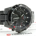 Наручные часы в чёрном цвете - максимум комфорта и качества, модель станет главной особенностью вашего образа. Прослеживается автомобильная тематика, каждая деталь тщательно продумана. Кварцевый механизм с точностью хода +/- 20 секунд в месяц работает от батарейки, рассчитанной на 3 года работы. Минеральное стекло. Противоударный корпусУдаропрочный корпусМеханизм заключён в корпус, выполненный из современных материалов, устойчивых к ударам, механическим повреждениям и падению с высоты: инновационный пластик, карбон, нержавеющая сталь, титан. и браслет из нержавеющей стали 316L. Водостойкость до 10 бар. Чёрное IP-покрытиеIP-покрытиеМетод ионного напыления. Демонстрирует повышенную устойчивость к истиранию, окислению и химическим веществам. Под воздействием высокого давления и температуры около 1500°C молекулы металла надёжно соединяются с частицами корпуса часов.. Закручивающаяся задняя крышка. Люминесцентная подсветкаЛюминесцентное покрытиеПозволяет считывать показания времени в темноте. Производители наносят на стрелки, часовые индексы, безель или поверхность циферблата светонакопительный состав, дающий холодное свечение.. Секундомер, хронографХронографФункция позволяет измерять отрезки времени с особой точностью: часы, минуты, секунды. Верным признаком хронографа является наличие на циферблате 3 дополнительных окошек-счётчиков., окошко даты. Габариты: 43,8 x 48,5 x 12,1 мм.