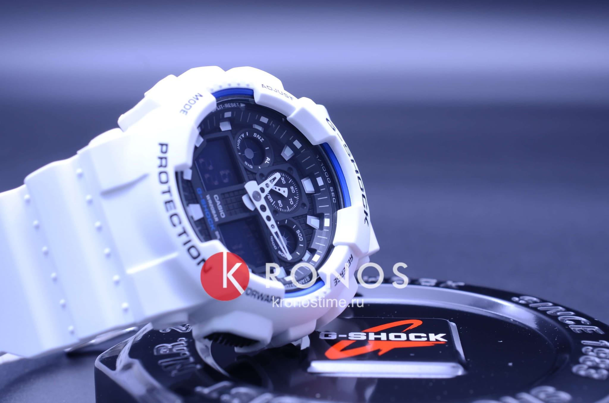 Японские мужские часы-хронографХронографФункция позволяет измерять отрезки времени с особой точностью: часы, минуты, секунды. Верным признаком хронографа является наличие на циферблате 3 дополнительных окошек-счётчиков. Casio G-Shock GA-100B-7A из коллекции G-Shock. Противоударный пластиковый корпус с карбоновыми волокнами более прочный и, в то же время, более легкий. Минеральное стеклоМинеральное стеклоМинеральное стекло представляет собой искусственно выращенный минерал кварца. Такое стекло отличается особой устойчивостью к повреждениям и царапинам. Уступает по некоторым качествам сапфировому стеклу. устойчивое к появлению царапин, обладающее высокой прозрачностью. Ударопрочный корпусУдаропрочный корпусМеханизм заключён в корпус, выполненный из современных материалов, устойчивых к ударам, механическим повреждениям и падению с высоты: инновационный пластик, карбон, нержавеющая сталь, титан. защищает механизм от ударов и вибрации. Многокомпонентный циферблат состоит из цифровых окошек указателей числа и дня недели, а также индикатора режима работы часов, который расположен в позиции 9 часов и выполнен в виде пропеллера. Светодиодная подсветкаСветодиодная подсветкаСветодиодная или LED-подсветка обеспечивает появление яркого холодного свечения за счёт LED-элементов - маленьких лампочек. Они потребляют минимальное количество энергии, чаще всего можно встретить 1 светодиод, в нижней части циферблата. освещает весь циферблат. Мировое времяМировое время Полезное часовое усложнение, отображающее время в основных городах и известных областях по всему миру, оно связано с часовыми поясами, удобно для путешественников и бизнесменов. – 48 городов (29 часовых поясов). СекундомерСекундомерСекундоме́р — прибор, способный измерять интервалы времени с точностью до долей секунды. с точностью измерения 1/100 секунды и измерением до 23 часов 59 минут 59,99 cек. ТаймерТаймерОтсчитывает секунды в обратном направлении в заданном интервале времени. обратного отсчета (диапазон времени 24 часа), автоматический календарь, 12/24 отображение времени. 5 будильниковБудильникБуди́льник — часы, в заданный момент времени подающие звуковой, световой и/или в редких случаях другой сигнал., ежечасный сигнал. Класс водозащиты: 200 метров, позволит плавать, нырять и заниматься другими водными видами спорта. Ремешок из полимерного материала на стандартной застежке.