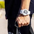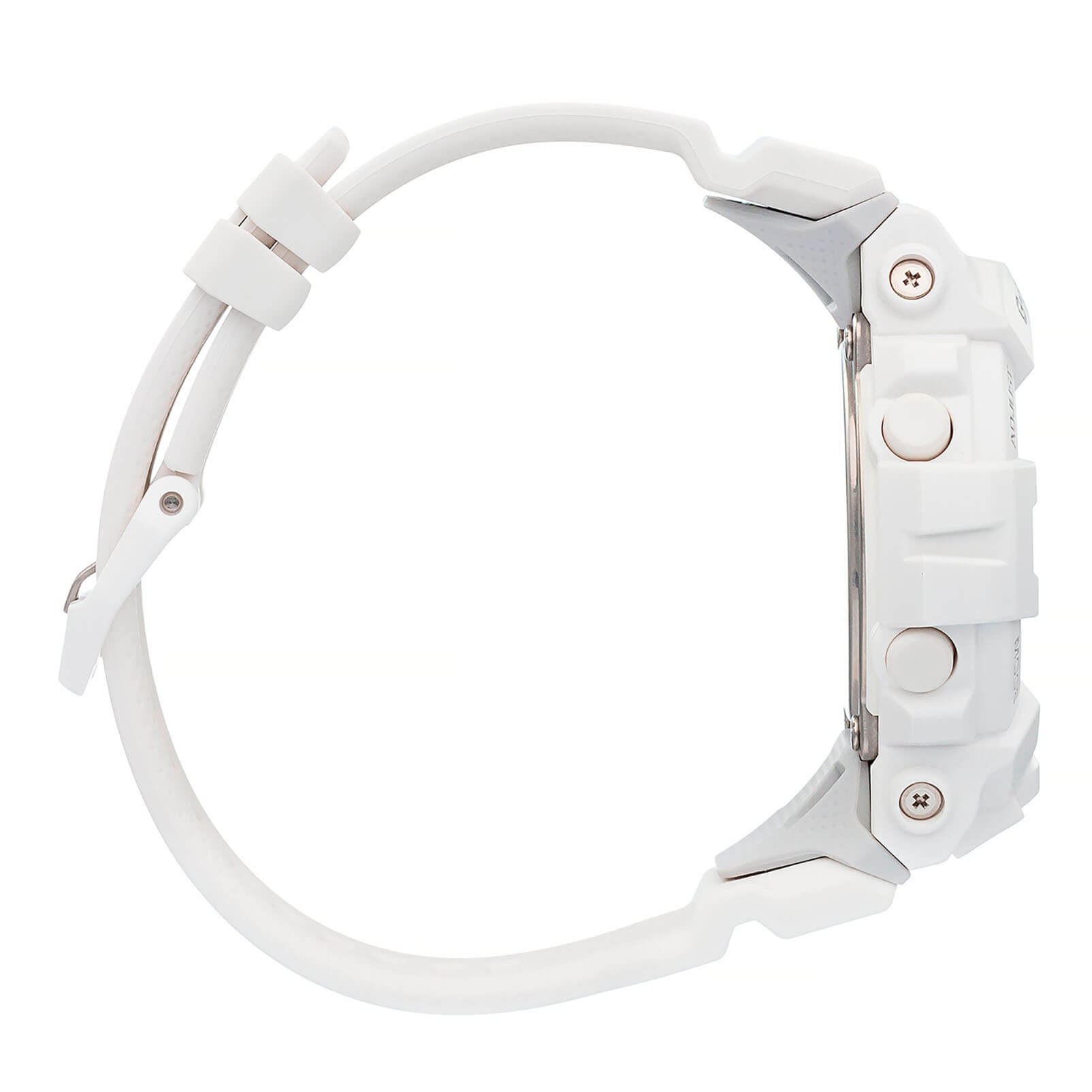 Белоснежные наручные часы с противоударным корпусомУдаропрочный корпусМеханизм заключён в корпус, выполненный из современных материалов, устойчивых к ударам, механическим повреждениям и падению с высоты: инновационный пластик, карбон, нержавеющая сталь, титан. сделаны из полимерного пластика, который устойчив к повреждениям и падению с высоты. Такой же материал был выбран и для гибкого ремешка, обеспечивающего комфортное ношение. Это первая модель из линейки G-Shock, оснащённая шагомером, теперь вы сможете в любое время следить за своей активностью. Японский кварцевый механизм работает от батарейки, срок её службы - 2 года. Минеральное стекло. Светодиодная подсветкаСветодиодная подсветкаСветодиодная или LED-подсветка обеспечивает появление яркого холодного свечения за счёт LED-элементов - маленьких лампочек. Они потребляют минимальное количество энергии, чаще всего можно встретить 1 светодиод, в нижней части циферблата. циферблата, люминесцентное покрытиеЛюминесцентное покрытиеПозволяет считывать показания времени в темноте. Производители наносят на стрелки, часовые индексы, безель или поверхность циферблата светонакопительный состав, дающий холодное свечение. стрелок. Bluetooth-синхронизацияBluetoothСовременная технология, позволяющая синхронизировать часы с телефоном и переносить данные. Часы с Bluetooth расширяют возможности вашего смартфона и делают его использование ещё более удобным., таймер с автоповтором, секундомер, автоматический календарь, будильник. Водостойкость при давлении 20 бар. Габариты: 54,1 x 48,6 x 15,5 мм.
