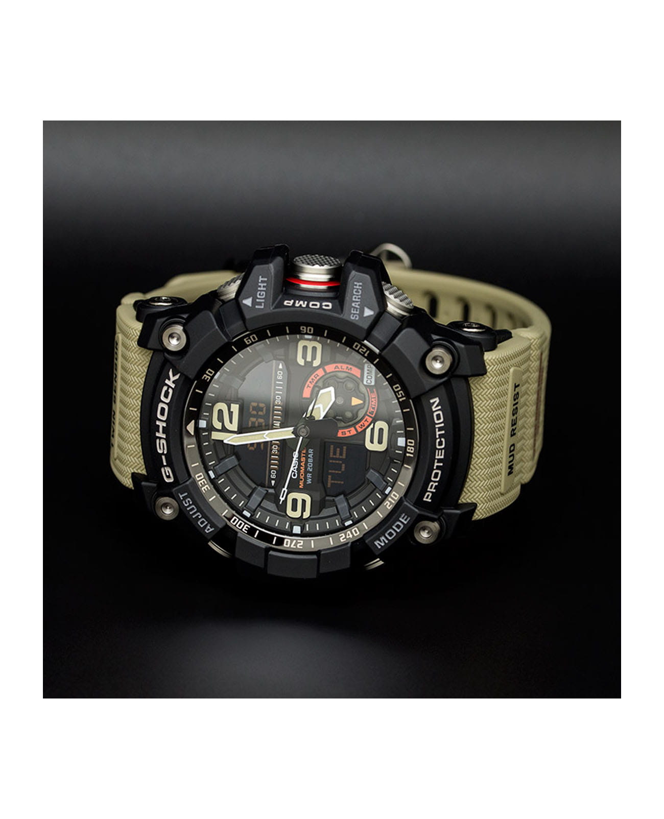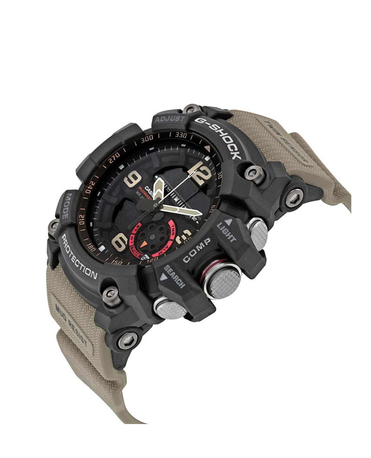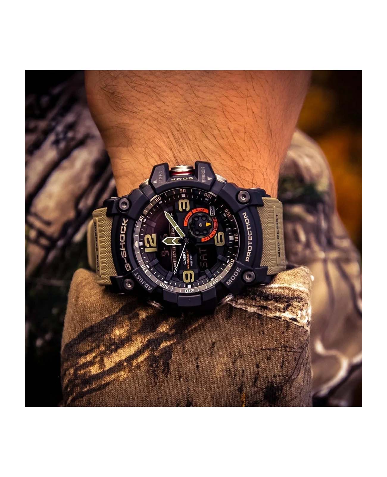 Японские мужские часы-хронографХронографФункция позволяет измерять отрезки времени с особой точностью: часы, минуты, секунды. Верным признаком хронографа является наличие на циферблате 3 дополнительных окошек-счётчиков. Casio G-Shock GG-1000-1A5 из коллекции G-Shock. При создании этой модели были учтены экстремальные ситуации, с которыми сталкиваются владельцы часов в суровых условиях пустыни. Mudmaster. Индикатор низкого заряда батареи. Минеральное стеклоМинеральное стеклоМинеральное стекло представляет собой искусственно выращенный минерал кварца. Такое стекло отличается особой устойчивостью к повреждениям и царапинам. Уступает по некоторым качествам сапфировому стеклу. устойчивое к появлению царапин, обладающее высокой прозрачностью. Ударопрочный корпусУдаропрочный корпусМеханизм заключён в корпус, выполненный из современных материалов, устойчивых к ударам, механическим повреждениям и падению с высоты: инновационный пластик, карбон, нержавеющая сталь, титан. защищает механизм от ударов и вибрации. Светодиодная подсветкаСветодиодная подсветкаСветодиодная или LED-подсветка обеспечивает появление яркого холодного свечения за счёт LED-элементов - маленьких лампочек. Они потребляют минимальное количество энергии, чаще всего можно встретить 1 светодиод, в нижней части циферблата. освещает весь циферблат. Мировое времяМировое время Полезное часовое усложнение, отображающее время в основных городах и известных областях по всему миру, оно связано с часовыми поясами, удобно для путешественников и бизнесменов. – 48 городов (29 часовых поясов). СекундомерСекундомерСекундоме́р — прибор, способный измерять интервалы времени с точностью до долей секунды. с точностью измерения 1/100 секунды и измерением до 23 часов 59 минут 59,99 cек. ТаймерТаймерОтсчитывает секунды в обратном направлении в заданном интервале времени. обратного отсчета (диапазон времени 24 часа), автоматический календарь, 12/24 отображение времени. 5 будильникаБудильникБуди́льник — часы, в заданный момент времени подающие звуковой, световой и/или в редких случаях другой сигнал., один с функцией Snooze, ежечасный сигнал. Встроенный цифровой компас. Диапазон измерения от 0° до 359° с точностью 1°. Коррекция магнитного склонения. Встроенный датчик температуры от -10° до +60°С с точностью 0,1°C. Класс водозащиты: 200 метров, позволит плавать, нырять и заниматься другими водными видами спорта. Ремешок из полимерного материала на стандартной застежке.
