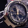 Аксессуар линейки G-Steel отлично смотрится на широком мужском запястье, массивный тёмный циферблат с крупными золотистыми деталями станет превосходным дополнением для повседневного образа. Это часы на солнечной батарее с технологией , включённая функция сохранения энергии увеличивает время работы аккумулятора без подзарядки до 18 месяцев. Ударопрочный корпусУдаропрочный корпусМеханизм заключён в корпус, выполненный из современных материалов, устойчивых к ударам, механическим повреждениям и падению с высоты: инновационный пластик, карбон, нержавеющая сталь, титан. отличается необычной двухслойной конструкцией, амортизационная полимерная прокладка располагается между пластами из нержавеющей стали 316L. Это обеспечивает появление максимальной устойчивости к ударам и повреждениям. Светодиодная подсветкаСветодиодная подсветкаСветодиодная или LED-подсветка обеспечивает появление яркого холодного свечения за счёт LED-элементов - маленьких лампочек. Они потребляют минимальное количество энергии, чаще всего можно встретить 1 светодиод, в нижней части циферблата. циферблата, стрелки с люминесцентным покрытиемЛюминесцентное покрытиеПозволяет считывать показания времени в темноте. Производители наносят на стрелки, часовые индексы, безель или поверхность циферблата светонакопительный состав, дающий холодное свечение.. Прочный каучуковый ремешок. Минеральное стекло. Водостойкость 20 бар. Частичный цветной IP-финишIP-покрытиеМетод ионного напыления. Демонстрирует повышенную устойчивость к истиранию, окислению и химическим веществам. Под воздействием высокого давления и температуры около 1500°C молекулы металла надёжно соединяются с частицами корпуса часов. корпуса. Функции: автоматический календарь, будильник, хронографХронографФункция позволяет измерять отрезки времени с особой точностью: часы, минуты, секунды. Верным признаком хронографа является наличие на циферблате 3 дополнительных окошек-счётчиков., секундомер, мировое времяМировое время Полезное часовое усложнение, отображающее время в основных городах и известных областях по всему миру, оно связано с часовыми поясами, удобно для путешественников и бизнесменов. , таймер обратного отсчёта, UTCUTCВсемирное кординационное время, не имеющее привязки к географическому положению Гринвича, основывается на атомном отсчёте времени. Регулировка времени осуществляется более точно, чем устаревшее GMT.