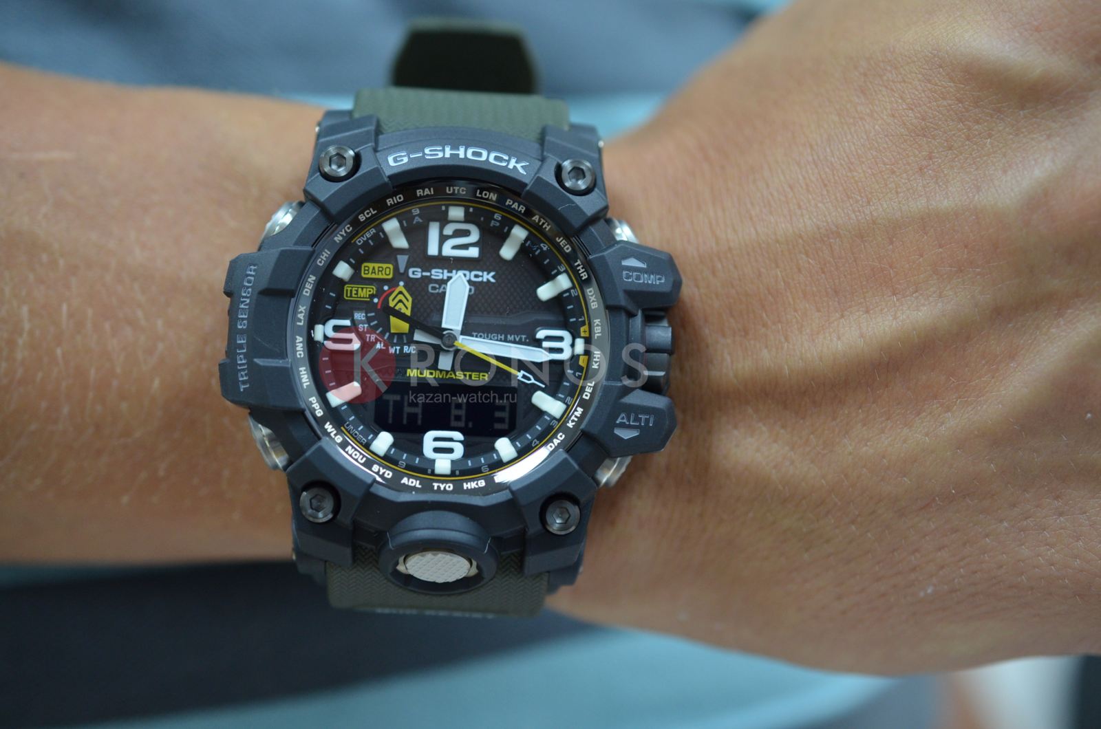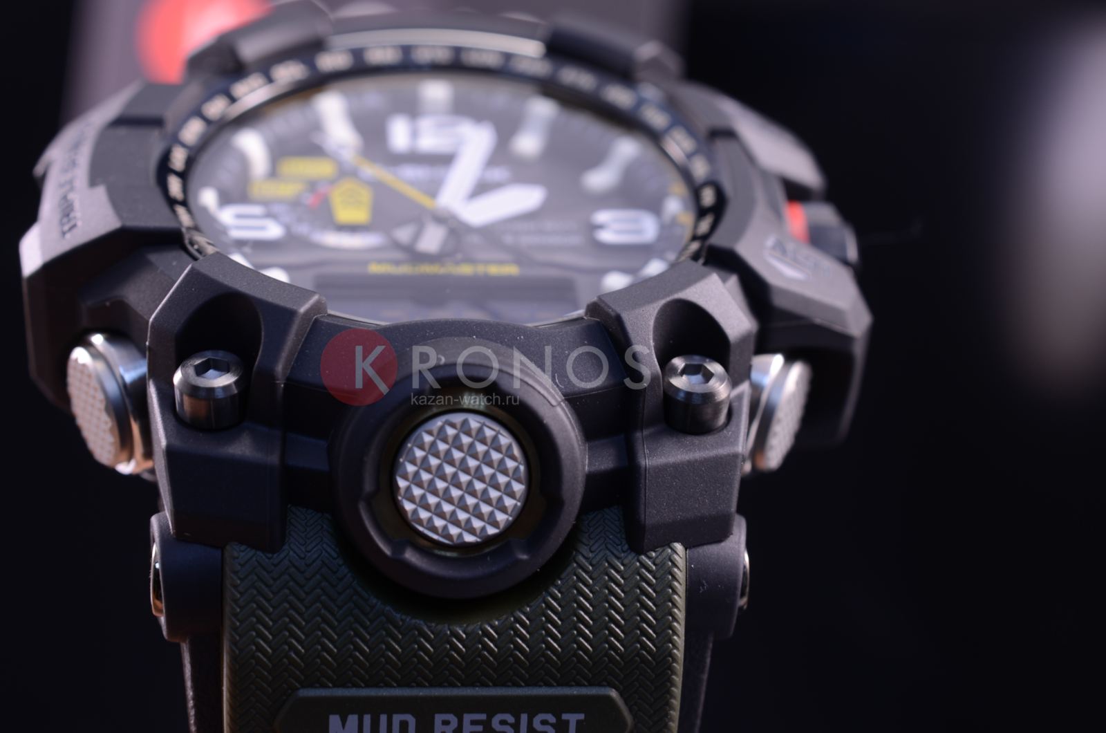 Японские мужские часы из коллекции G-Shock помогут завершить повседневный образ и порадуют владельца широким функционалом. Наручные часы серии Mudmaster привлекают брутальным дизайном с внушительным ударопрочным корпусомУдаропрочный корпусМеханизм заключён в корпус, выполненный из современных материалов, устойчивых к ударам, механическим повреждениям и падению с высоты: инновационный пластик, карбон, нержавеющая сталь, титан.. Они выполнены в стиле милитари, сочетая в себе узнаваемое оформление, прочные материалы и современные технологии. Привлекательно смотрится полимерный ремешок цвета хаки, обеспечивающий комфортное ношение. Циферблат защищает сапфировое стеклоСапфировое стеклоПрочный и надёжный материал из кристалла сапфира синтетического происхождения, характеризующийся особой твёрдостью и устойчивостью к царапинам и повреждениям. с антибликовым покрытием, устойчивое к возникновению царапин на поверхности. Корпус из высококачественного пластика. Двойная электролюминесцентная подсветкаЭлектролюминесцентная подсветкаЭлектролюминесцентная панель устанавливается под ЖК-экраном часов, при нажатии кнопки электричество преобразуется в свет за счёт подачи напряжения на атомы фосфора, такой тип подсветки позволяет освещать весь циферблат.. Питание от солнечной батареи Tough SolarTough SolarТехнология основана на подзарядке аккумулятора от источника солнечного света, специальная панель улавливает солнечные лучи и преобразует их в энергию для работы часов. Достаточно пары минут нахождения на солнце для функционирования часов в течении суток.. Индикатор заряда батарейки. Устойчивость к грязи и пыли. Включение и выключение звука кнопок. Функции: цифровой компас, барометр, термометр от -10° С до +60°С, UTCUTCВсемирное кординационное время, не имеющее привязки к географическому положению Гринвича, основывается на атомном отсчёте времени. Регулировка времени осуществляется более точно, чем устаревшее GMT.