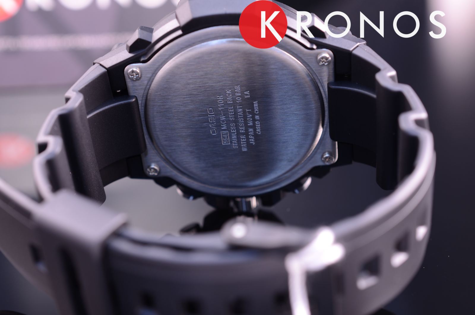 Наручные кварцевые часы Casio MCW-110H-9A изготавливаются из качественного полимера, что гарантирует продолжительный эксплуатационный период изделия и надежную защиту кварцевого механизма. Использовать аксессуар можно при любом уровне внешнего освещения, для достижения такой цели на стрелки нанесено светонакопительное покрытие. В модели часов MCW-110H-1A одновременно действует два формата отображения показаний времени: 12-ти и 24-х часовой. Размер корпуса часов 49,8х53,7х14,3 мм, водонепроницаемость WR100 или 10 атмосфер.