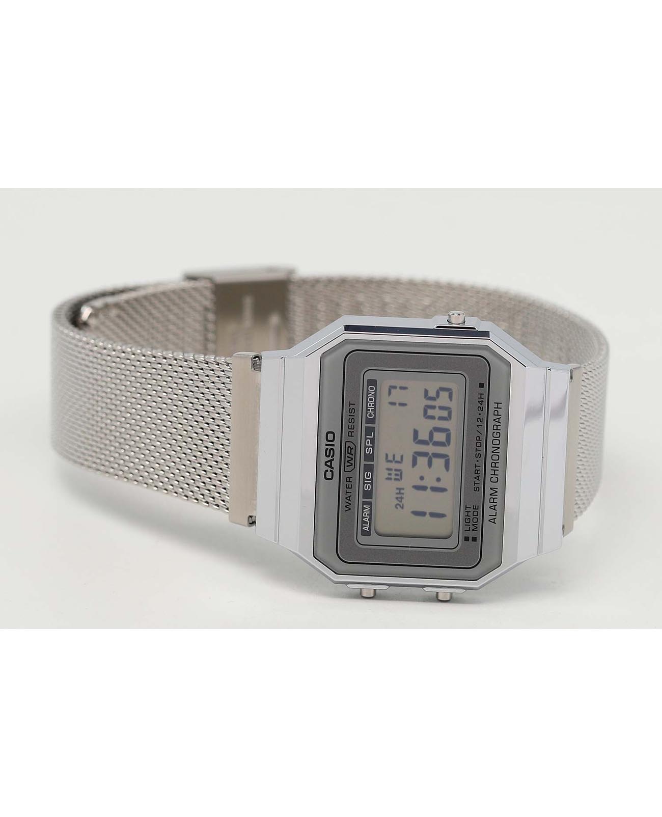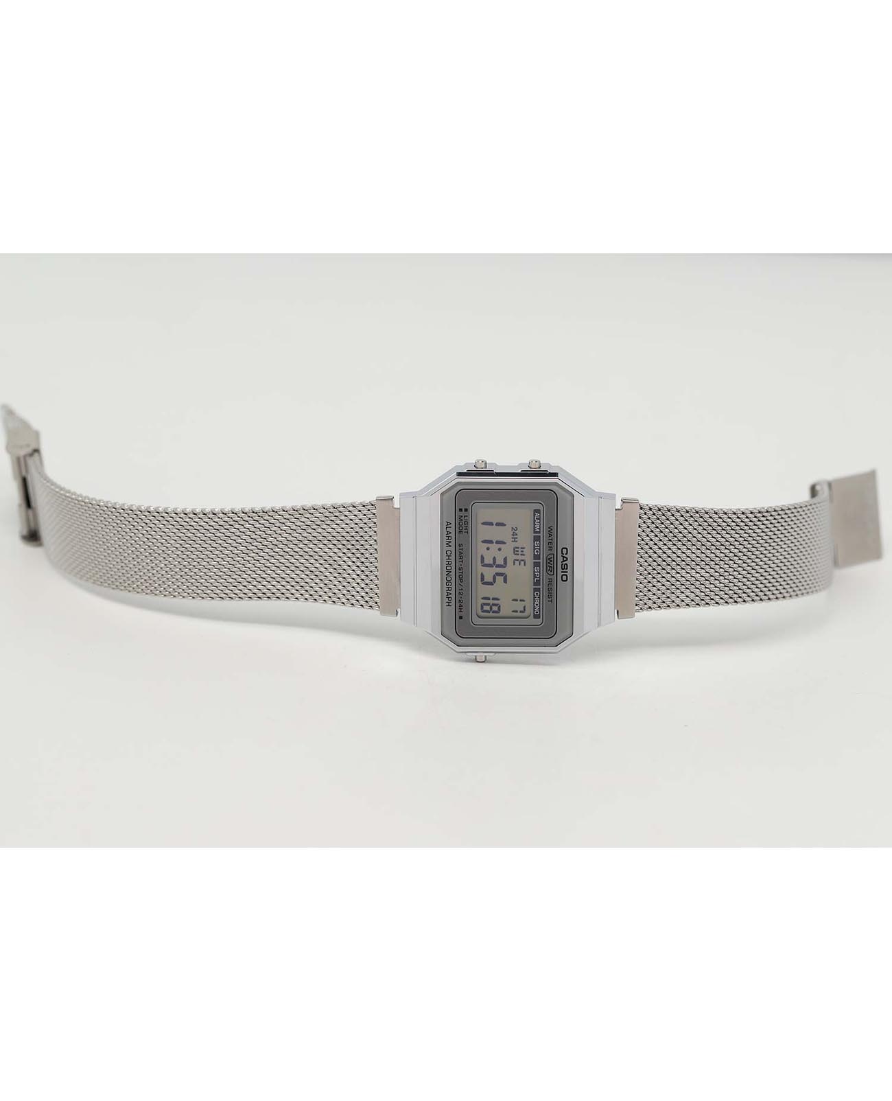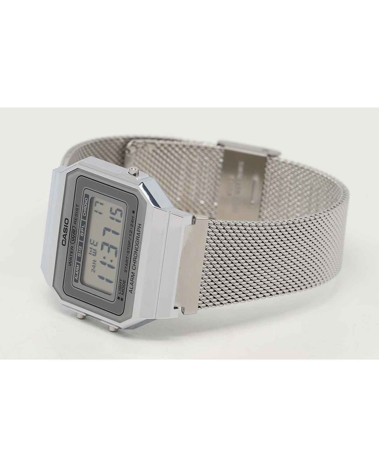 Спортивные японские мужские часы с секундомеромСекундомерСекундоме́р — прибор, способный измерять интервалы времени с точностью до долей секунды. Casio Vintage A700WM-7ADF (A700WM-7A), кварцевый механизм с высокой точностью. Издавая звуковой сигнал в установленное время, будильникБудильникБуди́льник — часы, в заданный момент времени подающие звуковой, световой и/или в редких случаях другой сигнал. напоминает о событиях, которые повторяются каждый день. Корпус из полимерного пластика. Класс водозащиты: 30 метров, позволит защитить корпус от случайных брызг или капель дождя. Стальной браслет миланского плетения на раскладном замкеРаскладной замокДанный вариант застежки используется только на часах с металлическим браслетом. Отличительная особенность такого крепления в том, что длина браслета становится универсальной и вы можете самостоятельно отрегулировать нужный вам размер – застежка просто двигается по браслету часов..