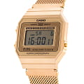 Спортивные японские часы-хронографХронографФункция позволяет измерять отрезки времени с особой точностью: часы, минуты, секунды. Верным признаком хронографа является наличие на циферблате 3 дополнительных окошек-счётчиков. с секундомеромСекундомерСекундоме́р — прибор, способный измерять интервалы времени с точностью до долей секунды. Casio Vintage A700WMG-9A, кварцевый механизм с высокой точностью. Издавая звуковой сигнал в установленное время, будильникБудильникБуди́льник — часы, в заданный момент времени подающие звуковой, световой и/или в редких случаях другой сигнал. напоминает о событиях, которые повторяются каждый день. Циферблат подсвечивается светодиодом. 12-ти и 24-х часовой формат времени. Корпус из нержавеющей стали. Класс водозащиты: 30 метров, позволит защитить корпус от случайных брызг или капель дождя. Стальной браслет миланского плетения на раскладном замке.