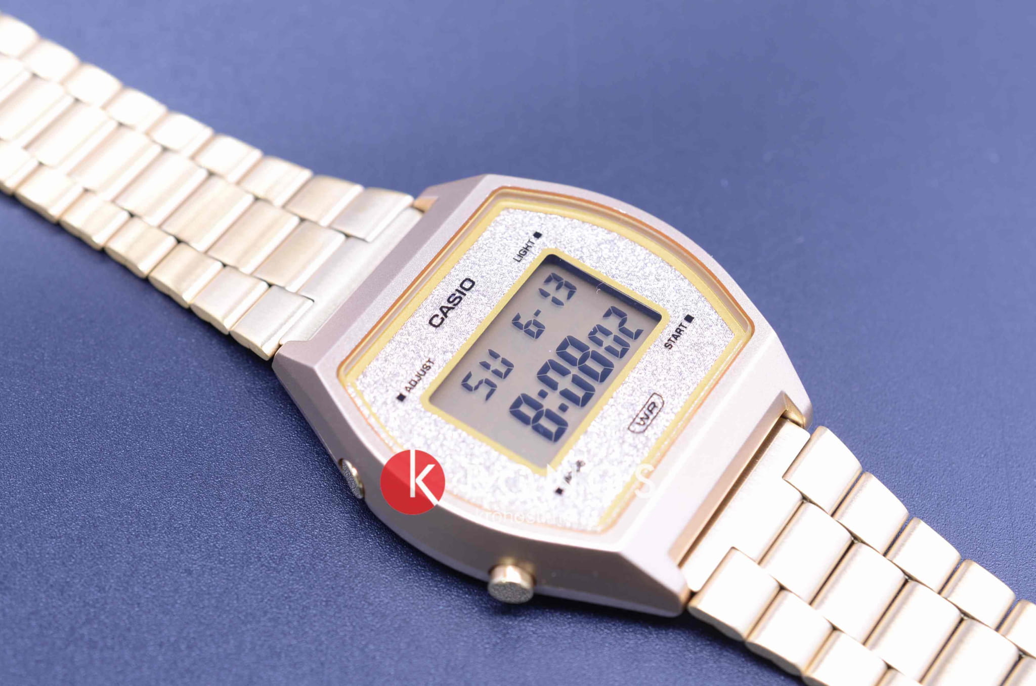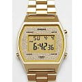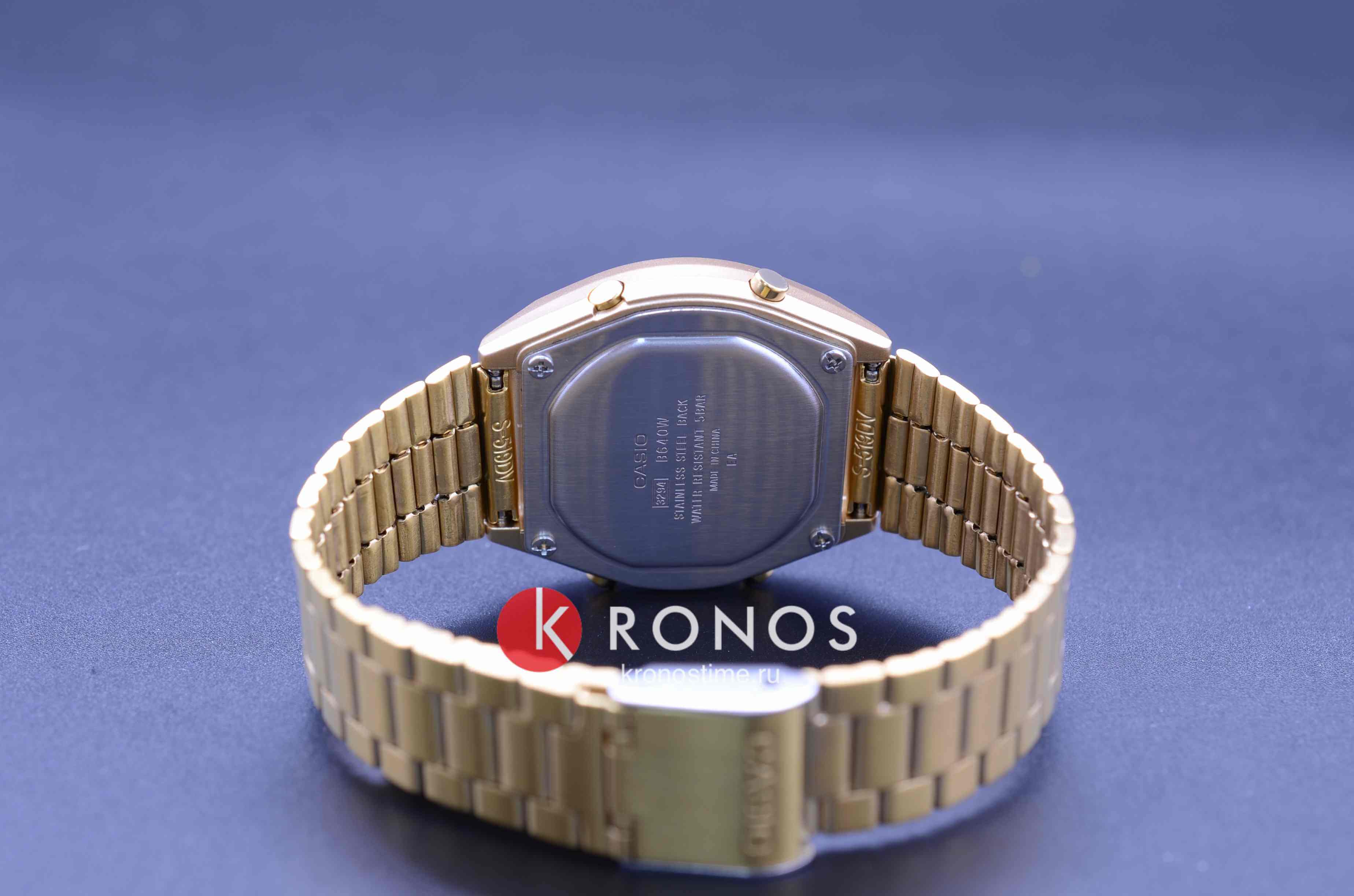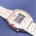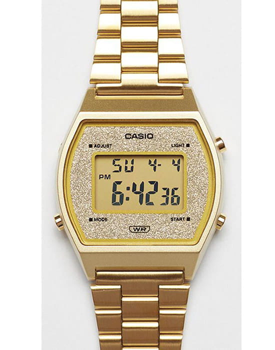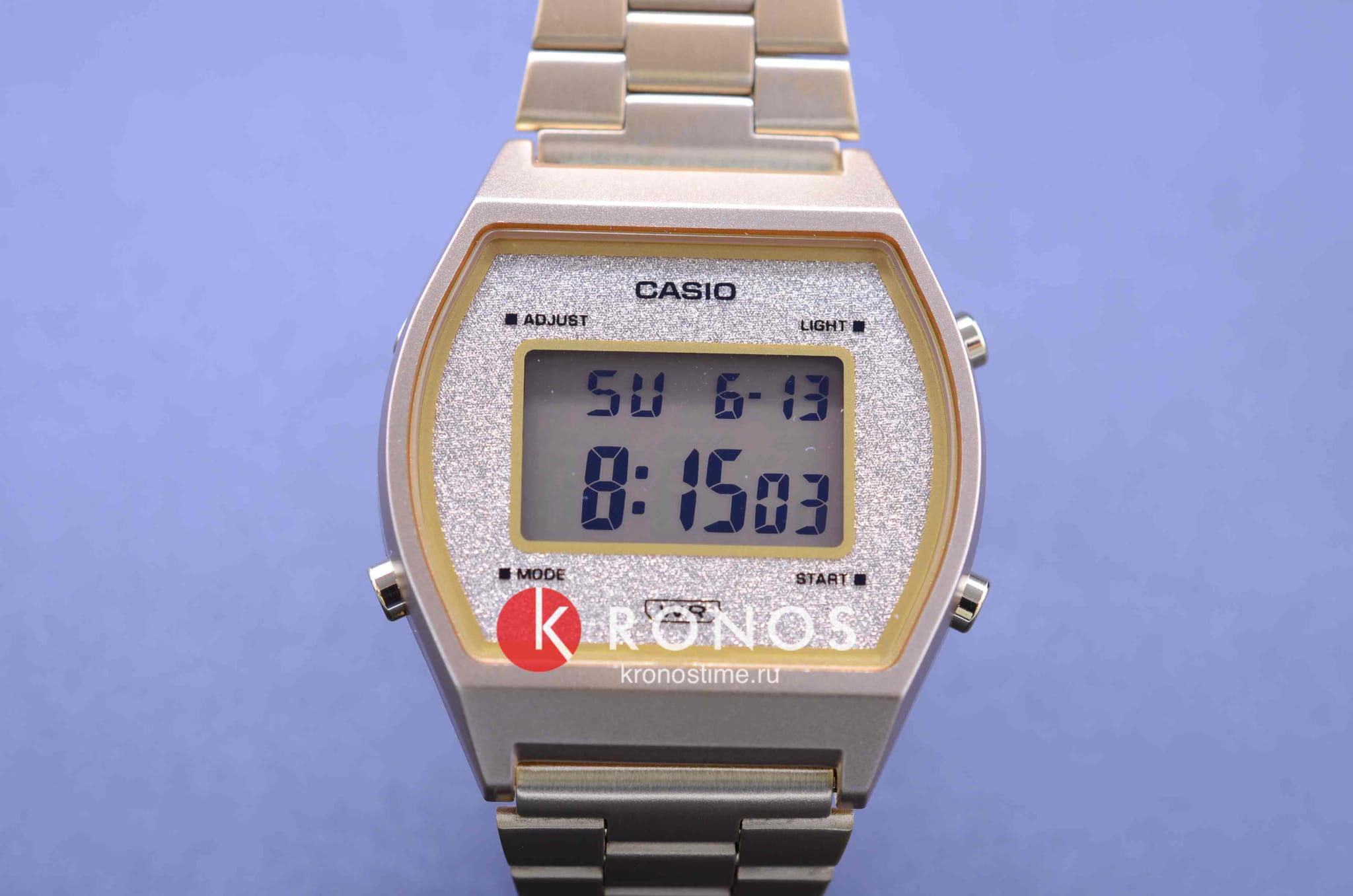 Первые модели от Casio выпускались в квадратном корпусе, который успешно реализован в аксессуаре B640WCG-5EF. Он стал не только стильным элементом часов, но и напоминанием о прошлых успехах бренда. Привлекательно смотрится цифровой дисплей с блестящей окантовкой, оттенок подобран в тон браслету. Он выполнен из нержавеющей стали 316L с IP-покрытиемIP-покрытиеМетод ионного напыления. Демонстрирует повышенную устойчивость к истиранию, окислению и химическим веществам. Под воздействием высокого давления и температуры около 1500°C молекулы металла надёжно соединяются с частицами корпуса часов., дополнительно защищающим от царапин. Яркая светодиодная подсветкаСветодиодная подсветкаСветодиодная или LED-подсветка обеспечивает появление яркого холодного свечения за счёт LED-элементов - маленьких лампочек. Они потребляют минимальное количество энергии, чаще всего можно встретить 1 светодиод, в нижней части циферблата. позволяет использовать часы в темноте, LED-индикатор мигает при окончании работы секундомера или таймера. Работ модели обеспечивает японский кварцевый механизм, батарейка которого рассчитана на 3 года службы. Циферблат защищён акриловым стеклом, устойчивым к повреждениям. Наручные ретро-часы имеют водостойкость 50 метров и без проблем выдержат мойку машины, душ, дождь. Удобна функция будильника, календаря. Габариты: 38,9 x 35 x 9,9 мм.