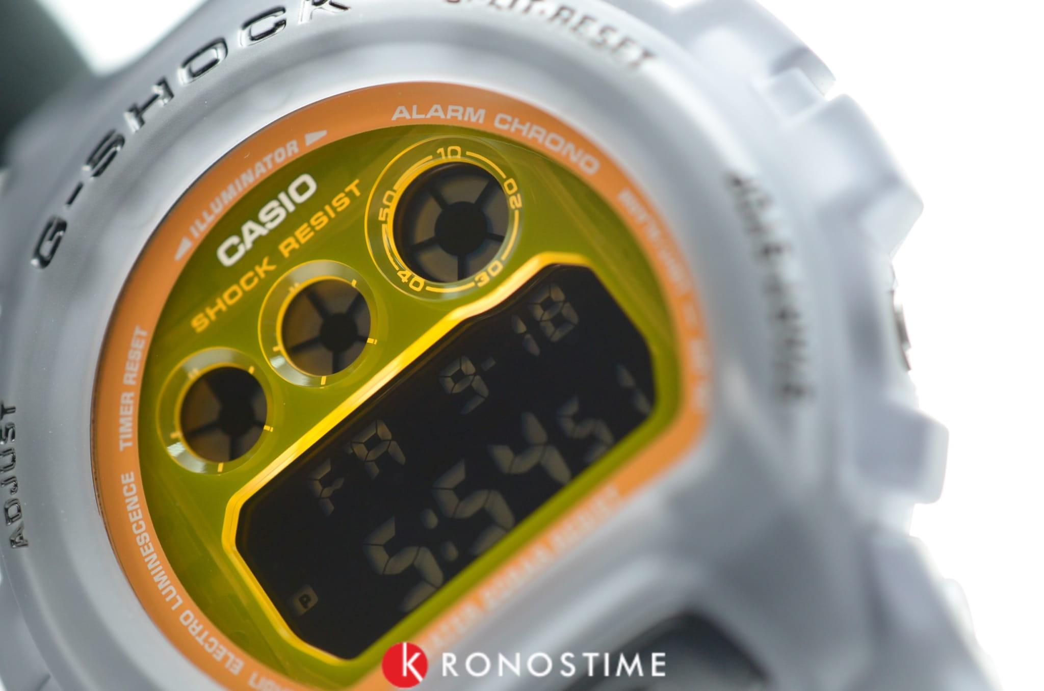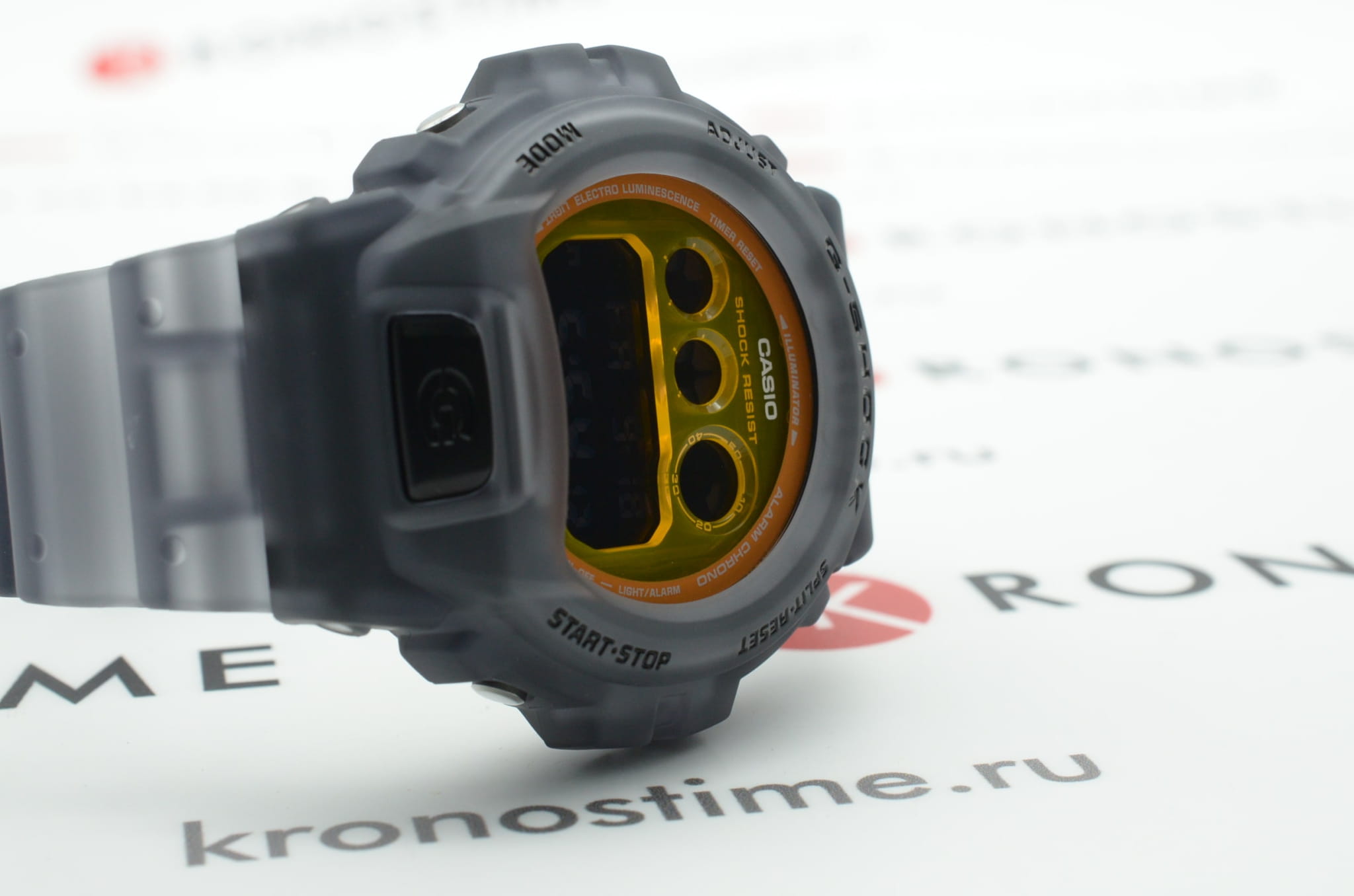 Мужские японские часы Casio G-Shock DW-6900LS-1ER из коллекции G-Shock относятся к лимитированному выпуску, посвящённому 25-летию корпуса DW-6900. Оригинальный дизайн, цветовая палитра родом из 90-х годов, привлекательно смотрится полупрозрачный противоударный корпусУдаропрочный корпусМеханизм заключён в корпус, выполненный из современных материалов, устойчивых к ударам, механическим повреждениям и падению с высоты: инновационный пластик, карбон, нержавеющая сталь, титан. в тёмном цвете. Узнаваемая деталь – 3 окошка разного размера в верхней части радужного циферблата. Японский кварцевый механизм. Батарейка с 2-летним сроком службы. Минеральное стеклоМинеральное стеклоМинеральное стекло представляет собой искусственно выращенный минерал кварца. Такое стекло отличается особой устойчивостью к повреждениям и царапинам. Уступает по некоторым качествам сапфировому стеклу. с закаленной поверхностью. Ударопрочный корпусУдаропрочный корпусМеханизм заключён в корпус, выполненный из современных материалов, устойчивых к ударам, механическим повреждениям и падению с высоты: инновационный пластик, карбон, нержавеющая сталь, титан. устойчив к ударам, повреждениям, вибрации, падению с высоты. Корпус и браслет из полимерного материала. Электролюминесцентная подсветкаЭлектролюминесцентная подсветкаЭлектролюминесцентная панель устанавливается под ЖК-экраном часов, при нажатии кнопки электричество преобразуется в свет за счёт подачи напряжения на атомы фосфора, такой тип подсветки позволяет освещать весь циферблат. циферблата. Водостойкость 200 метров. Отображение времени в формате "12/24 часа". СекундомерСекундомерСекундоме́р — прибор, способный измерять интервалы времени с точностью до долей секунды., хронографХронографФункция позволяет измерять отрезки времени с особой точностью: часы, минуты, секунды. Верным признаком хронографа является наличие на циферблате 3 дополнительных окошек-счётчиков., таймерТаймерОтсчитывает секунды в обратном направлении в заданном интервале времени. обратного отсчёта, будильникБудильникБуди́льник — часы, в заданный момент времени подающие звуковой, световой и/или в редких случаях другой сигнал. с многофункциональными сигналами. Автокалендарь. Габариты: 48,9 x 43,8 x 13,5 мм.