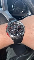 Мужские часы, дизайн которых вдохновлен воздушным потоком вокруг гоночного автомобиля. Многофункциональные японские мужские часы с BluetoothBluetoothСовременная технология, позволяющая синхронизировать часы с телефоном и переносить данные. Часы с Bluetooth расширяют возможности вашего смартфона и делают его использование ещё более удобным. Casio Edifice Windflow ECB-2200P-1AEF, кварцевый механизм с высокой точностью. Класс водозащиты: 100 метров, позволит плавать, нырять и заниматься другими водными видами спорта. Корпус часов изготовлен из карбона со стальной вставкой с IP-покрытиемIP-покрытиеМетод ионного напыления. Демонстрирует повышенную устойчивость к истиранию, окислению и химическим веществам. Под воздействием высокого давления и температуры около 1500°C молекулы металла надёжно соединяются с частицами корпуса часов.. Питание от солнечной энергии Tough SolarTough SolarТехнология основана на подзарядке аккумулятора от источника солнечного света, специальная панель улавливает солнечные лучи и преобразует их в энергию для работы часов. Достаточно пары минут нахождения на солнце для функционирования часов в течении суток. - солнечные батарейки большой мощности, индикатор заряда батареи. Функция автоматического сохранения энергии. Время работы аккумулятора без подзарядки приблизительно 7 месяцев, при включенной функции сохранения энергии приблизительно 18 месяцев. Двойная подcветка: циферблат и ЖК-дисплеи подсвечиваются светодиодомСветодиодная подсветкаСветодиодная или LED-подсветка обеспечивает появление яркого холодного свечения за счёт LED-элементов - маленьких лампочек. Они потребляют минимальное количество энергии, чаще всего можно встретить 1 светодиод, в нижней части циферблата., благодаря наличию функции задержки, после отпускания кнопки освещение горит еще несколько секунд. Настраиваемое послесвечение 1,5 или 3сек. Цвет подсветки: белый. Подсветка NeobriteПодсветка NeobriteИспользование светонакопительных составов на основе сульфида цинка или алюмината стронция, яркий свет можно наблюдать на протяжении 6-10 часов после «зарядки» часов около источника света. обеспечивает длительное послесвечение в темноте даже после кратковременного нахождения на свету. 12-ти и 24-х часовой формат времени. СекундомерСекундомерСекундоме́р — прибор, способный измерять интервалы времени с точностью до долей секунды. с двумя точностями показаний: 1/100с (до 1ч) и 1с (после 1ч) и временем измерения 24ч. Сплит-хронографСплит-хронографИспользуется для измерения продолжительности нескольких временных отрезков, начинающихся одновременно, а заканчивающихся в разное время.. ТаймерТаймерОтсчитывает секунды в обратном направлении в заданном интервале времени. обратного отсчета от 1с до 1ч. Мировое времяМировое время Полезное часовое усложнение, отображающее время в основных городах и известных областях по всему миру, оно связано с часовыми поясами, удобно для путешественников и бизнесменов. – 38 городов (38 часовых поясов), всемирное координированное время (UTCUTCВсемирное кординационное время, не имеющее привязки к географическому положению Гринвича, основывается на атомном отсчёте времени. Регулировка времени осуществляется более точно, чем устаревшее GMT.