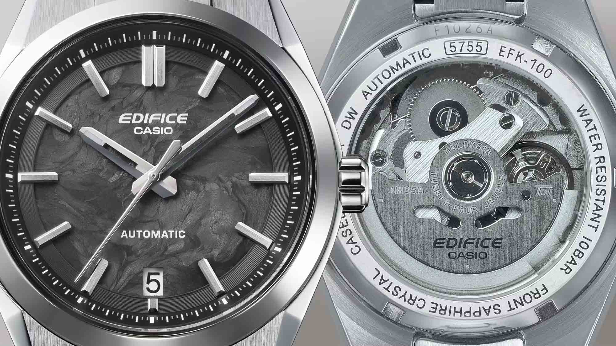 Мужские механические часы Casio Edifice EFK-100CD-1A — это стильный аксессуар, сочетающий в себе надёжность и функциональность. Модель выполнена из нержавеющей стали с размерами корпуса 43,5x39x12,5 мм, а его масса составляет 148 г. Защиту механизма обеспечивает сапфировое стеклоСапфировое стеклоПрочный и надёжный материал из кристалла сапфира синтетического происхождения, характеризующийся особой твёрдостью и устойчивостью к царапинам и повреждениям., устойчивое к повреждениям. Задняя пластина имеет прозрачную форму с винтовым замком, что позволяет наблюдать за работой механизма. Браслет из нержавеющей стали оснащён тройной застёжкой с одним касанием, обеспечивающей комфорт и надёжную фиксацию. Стандартный размер ремешка регулируется от 150 до 205 мм. Часы водонепроницаемы до 10 бар (, что позволяет использовать их при плавании и других водных активностях без глубокого погружения. Точность хода составляет ±45 секунд в день, а запас хода — около 40 часов. Часы имеют 24 драгоценных камня и частоту колебаний 21 600 полуколебаний в час. Эти часы станут универсальным аксессуаром для тех, кто ценит сочетание стиля, функциональности и надёжности — идеальный выбор для повседневной носки и активного образа жизни.