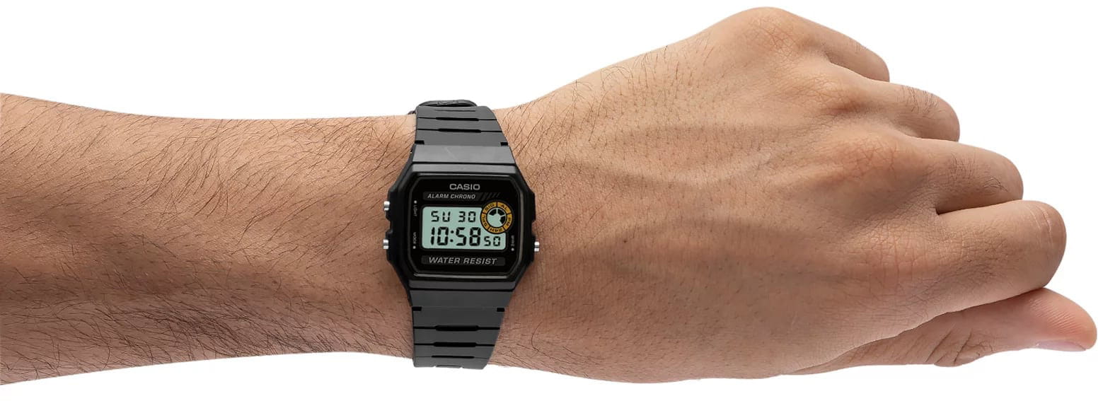 Простые и удобные мужские электронные часы на каждый день в популярном ретро-стиле Casio Collection F-94WA-8D, кварцевый механизм с высокой точностью. Класс водозащиты: 30 метров, позволит защитить корпус от случайных брызг или капель дождя. Корпус часов изготовлен из пластика. Пластиковый ремешок на стандартной застёжке. Циферблат подсвечивается сбоку электролюминесцентная подсветкойЭлектролюминесцентная подсветкаЭлектролюминесцентная панель устанавливается под ЖК-экраном часов, при нажатии кнопки электричество преобразуется в свет за счёт подачи напряжения на атомы фосфора, такой тип подсветки позволяет освещать весь циферблат.. СекундомерСекундомерСекундоме́р — прибор, способный измерять интервалы времени с точностью до долей секунды. с точностью показаний 1/100с и временем измерения 1ч. 12-ти и 24-х часовой формат времени.