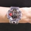 Многофункциональные наручные часы могут стать самой яркой деталью вашего образа, несмотря на сдержанную палитру. Полупрозрачная модель с металлическим оформлением циферблата выглядит, будто бы сделанная изо льда, напоминая о часах скелетонах. С таким аксессуаров вы точно будете становиться центром внимания любой компании. Срок службы батарейки, питающей кварцевый японский механизм - 5 лет. Электролюминесцентная подсветкаЭлектролюминесцентная подсветкаЭлектролюминесцентная панель устанавливается под ЖК-экраном часов, при нажатии кнопки электричество преобразуется в свет за счёт подачи напряжения на атомы фосфора, такой тип подсветки позволяет освещать весь циферблат. с кнопкой включения в нижней части. Устойчивый к большим нагрузкам противоударный корпусУдаропрочный корпусМеханизм заключён в корпус, выполненный из современных материалов, устойчивых к ударам, механическим повреждениям и падению с высоты: инновационный пластик, карбон, нержавеющая сталь, титан. из пластика. Водонепроницаемость 20 бар. Задняя крышка с гравировкой. 12/24-часовой формат отображения времени. Таймер, мировое времяМировое время Полезное часовое усложнение, отображающее время в основных городах и известных областях по всему миру, оно связано с часовыми поясами, удобно для путешественников и бизнесменов. , секундомер, UTCUTCВсемирное кординационное время, не имеющее привязки к географическому положению Гринвича, основывается на атомном отсчёте времени. Регулировка времени осуществляется более точно, чем устаревшее GMT.