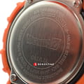 Ярко-оранжевый ударопрочный корпусУдаропрочный корпусМеханизм заключён в корпус, выполненный из современных материалов, устойчивых к ударам, механическим повреждениям и падению с высоты: инновационный пластик, карбон, нержавеющая сталь, титан. с узором выполнен из пластика и стали 316L. Японский кварцевый калибр отличается высокой точностью хода. Часы устойчивы к вредному воздействию магнитного поля. Прочное минеральное стекло защищает циферблат от повреждений. Сохраняется водостойкость до 20 бар. Функции: светодиодная подсветкаСветодиодная подсветкаСветодиодная или LED-подсветка обеспечивает появление яркого холодного свечения за счёт LED-элементов - маленьких лампочек. Они потребляют минимальное количество энергии, чаще всего можно встретить 1 светодиод, в нижней части циферблата., таймер, расчёт средней скорости пути, секундомер, мировое времяМировое время Полезное часовое усложнение, отображающее время в основных городах и известных областях по всему миру, оно связано с часовыми поясами, удобно для путешественников и бизнесменов. , календарь.