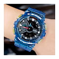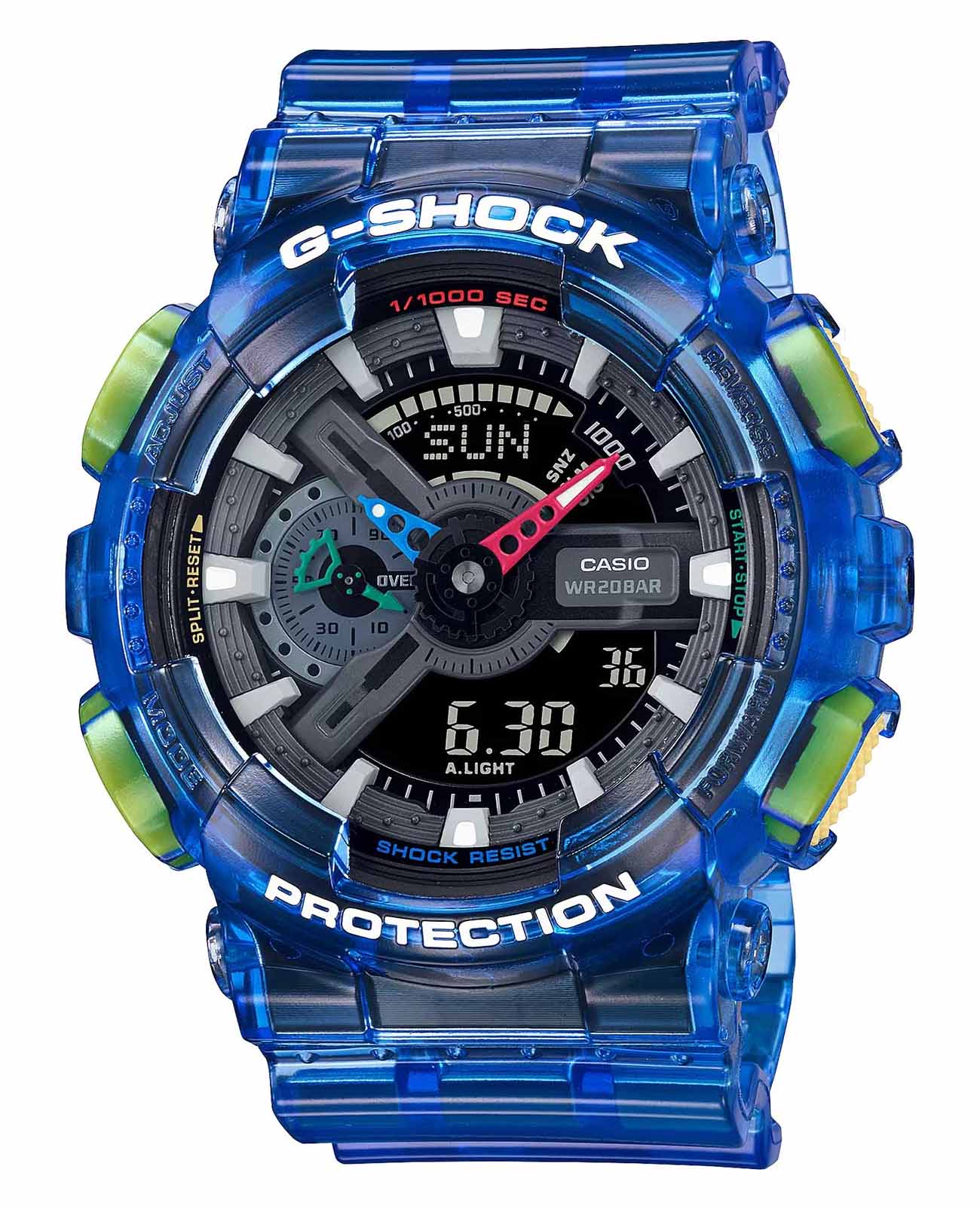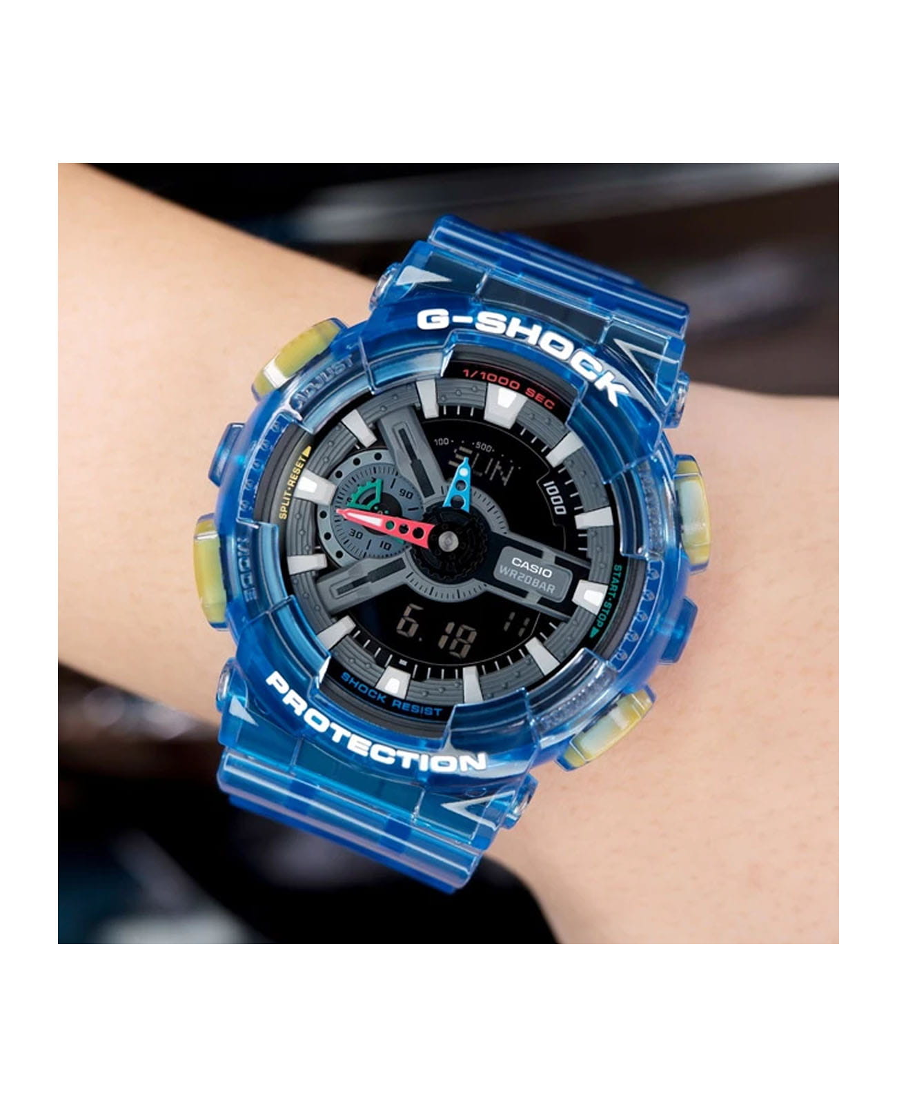 Японские мужские часы-хронографХронографФункция позволяет измерять отрезки времени с особой точностью: часы, минуты, секунды. Верным признаком хронографа является наличие на циферблате 3 дополнительных окошек-счётчиков. Casio G-Shock G-SHOCK GA-110JT-2ADR из коллекции G-Shock. Минеральное стеклоМинеральное стеклоМинеральное стекло представляет собой искусственно выращенный минерал кварца. Такое стекло отличается особой устойчивостью к повреждениям и царапинам. Уступает по некоторым качествам сапфировому стеклу. устойчивое к появлению царапин, обладающее высокой прозрачностью. Корпус часов изготовлен из полимерного материала. Светодиодная автоподсветка NeobriteПодсветка NeobriteИспользование светонакопительных составов на основе сульфида цинка или алюмината стронция, яркий свет можно наблюдать на протяжении 6-10 часов после «зарядки» часов около источника света. - при повороте часов в сторону лица подсветка дисплея осуществляется автоматически. Настраиваемое послесвечение 1,5 или 3сек. Цвет подсветки: оранжевый. Необритовое светонакопительное покрытие обеспечивает длительное послесвечение в темноте даже после кратковременного нахождения на свету. Ударопрочный корпусУдаропрочный корпусМеханизм заключён в корпус, выполненный из современных материалов, устойчивых к ударам, механическим повреждениям и падению с высоты: инновационный пластик, карбон, нержавеющая сталь, титан. защищает механизм от ударов и вибрации. Мировое времяМировое время Полезное часовое усложнение, отображающее время в основных городах и известных областях по всему миру, оно связано с часовыми поясами, удобно для путешественников и бизнесменов. – 48 городов (29 часовых поясов). СекундомерСекундомерСекундоме́р — прибор, способный измерять интервалы времени с точностью до долей секунды. с точностью измерения 1/100 секунды и измерением до 23 часов 59 минут 59,99 cек. ТаймерТаймерОтсчитывает секунды в обратном направлении в заданном интервале времени. обратного отсчета (диапазон времени 24 часа), автоматический календарь, 12/24 отображение времени. 5будильниковБудильникБуди́льник — часы, в заданный момент времени подающие звуковой, световой и/или в редких случаях другой сигнал., один с функцией Snooze, ежечасный сигнал. Стальная задняя крышка крепится на 4-х винтах. Класс водозащиты: 200 метров, позволит плавать, нырять и заниматься другими водными видами спорта. Ремешок из полимерного материала на стандартной застежке.