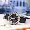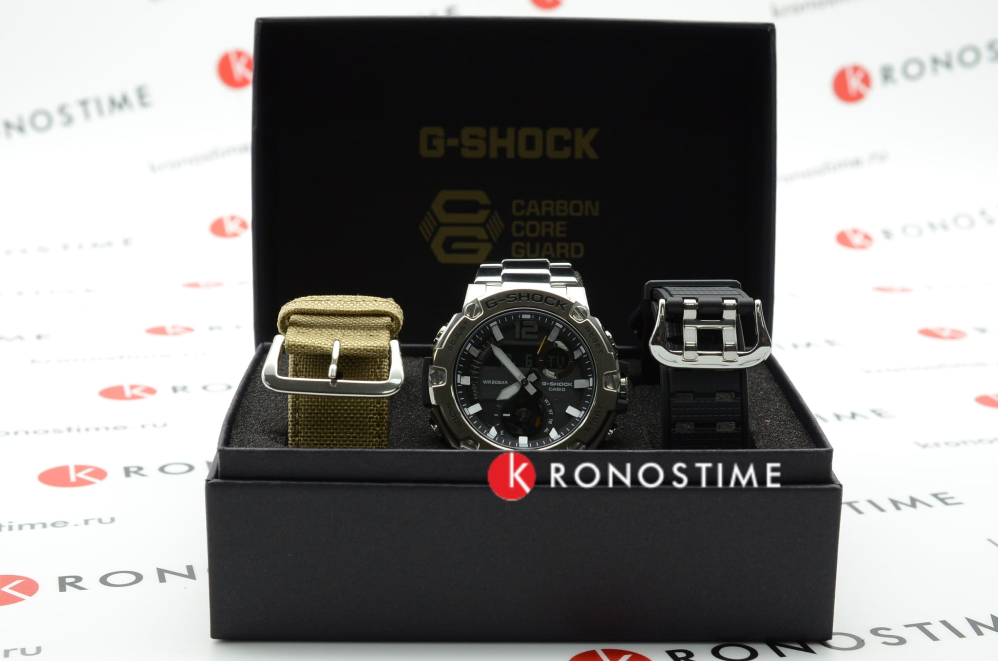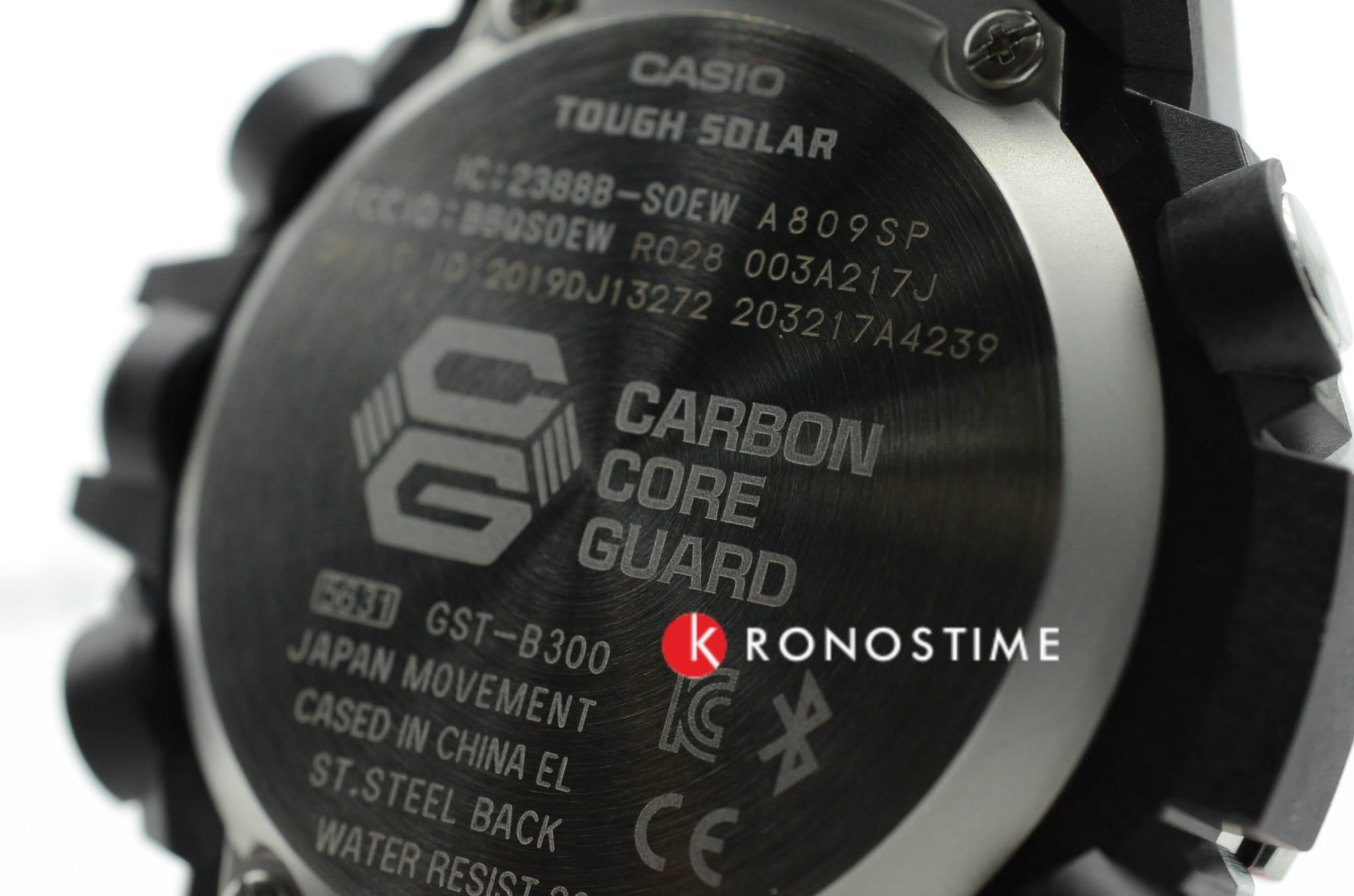 Японские мужские часы Casio G-Shock GST-B300E-5AER привлекают брутальным спортивным дизайном. Корпус имеет структуру Carbon Core GuardCarbon Core Guard Новейшая структура корпуса, разработанная Casio. Полиуретановая пластина дополнительно усилена карбоновыми вставками, что придаёт специальную защиту от механических повреждений. Карбон отличается лёгкостью и прочностью., что говорит о повышенной ударопрочности. БезельБезельВнешний ободок, закрепляющий стекло. В спортивных часах так называется поворотное кольцо с делениями на циферблате, выполняет роль таймера – замеряет отрезки времени на шкале. Неподвижный безель – элемент декора. Однонаправленно вращающийся безель на дайверских часах позволяет фиксировать моменты погружения и выныривания на поверхность. и браслет изготовлены из стали 316L. Японский кварцевый механизм отличается высокой точностью хода 15 +/- секунд в месяц. Часы оснащены инновационной технологией , синхронизация со смартфоном происходит с помощью BluetoothBluetoothСовременная технология, позволяющая синхронизировать часы с телефоном и переносить данные. Часы с Bluetooth расширяют возможности вашего смартфона и делают его использование ещё более удобным.. Возможности: двойная автоматическая подсветка, мировое времяМировое время Полезное часовое усложнение, отображающее время в основных городах и известных областях по всему миру, оно связано с часовыми поясами, удобно для путешественников и бизнесменов. , будильник, хронографХронографФункция позволяет измерять отрезки времени с особой точностью: часы, минуты, секунды. Верным признаком хронографа является наличие на циферблате 3 дополнительных окошек-счётчиков., календарь, таймер.