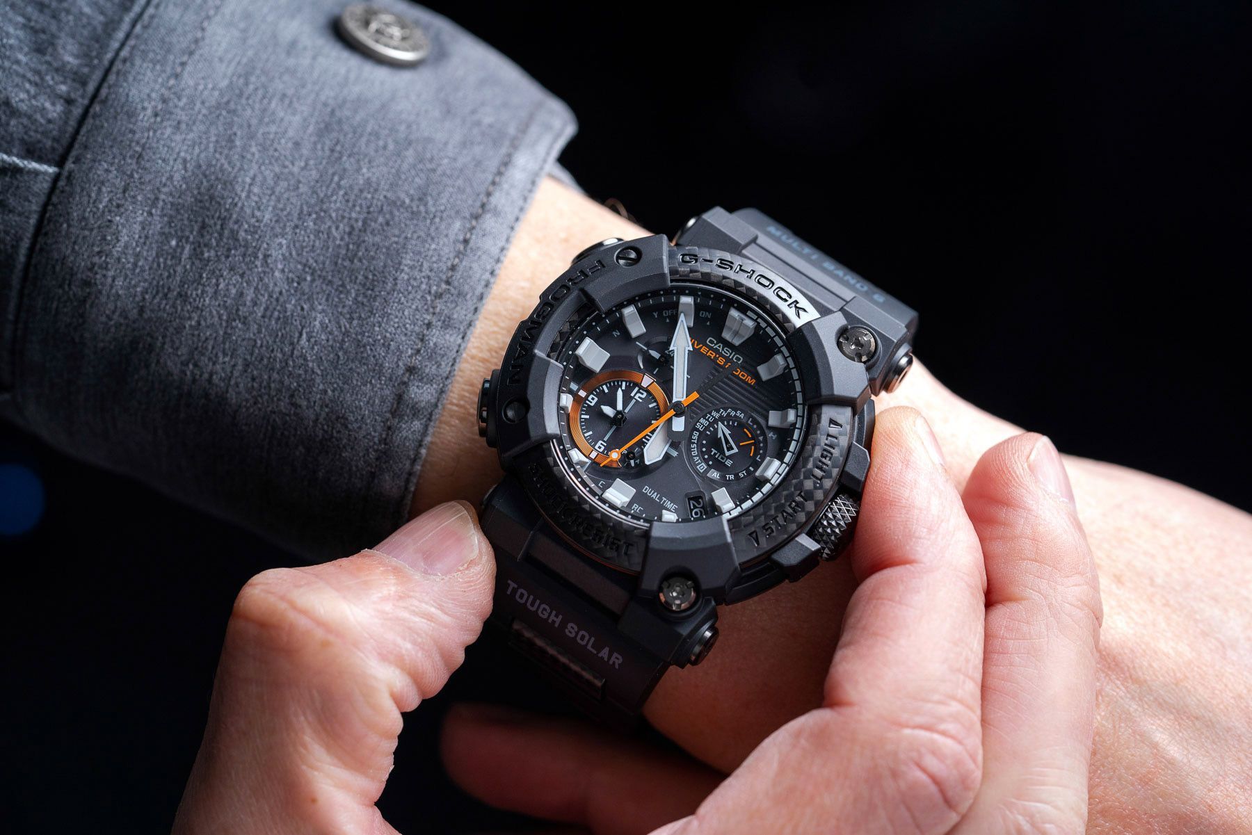 Часы Casio G-Shock GWF-A1000XC-1AER - модель из лимитированной серии Frogman для дайверов со стрелочной индикацией времени и ассиметричным дизайном циферблата, который является отличительной чертой линейки часов Frogman с момента ее запуска в 1993 году.