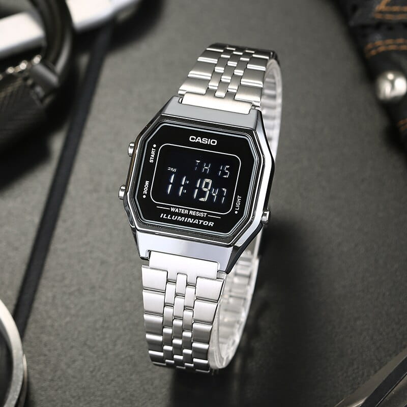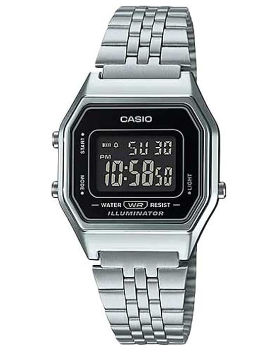 Модель LA680WA-1BDF из коллекции Vintage сочетает изысканный ретро-дизайн и современные функции. Компактный корпус из полимерного материала с хромированным покрытием и браслет из нержавеющей стали с регулируемой застёжкойРаскладная застёжкаТакой тип застёжки используется только на браслетах из металла. Она никогда не раскрывается полностью, происходит разделение на 2 и более частей. Раскладывающая застёжка снизит вероятность потери часов к минимуму. обеспечивают удобство и долговечность.