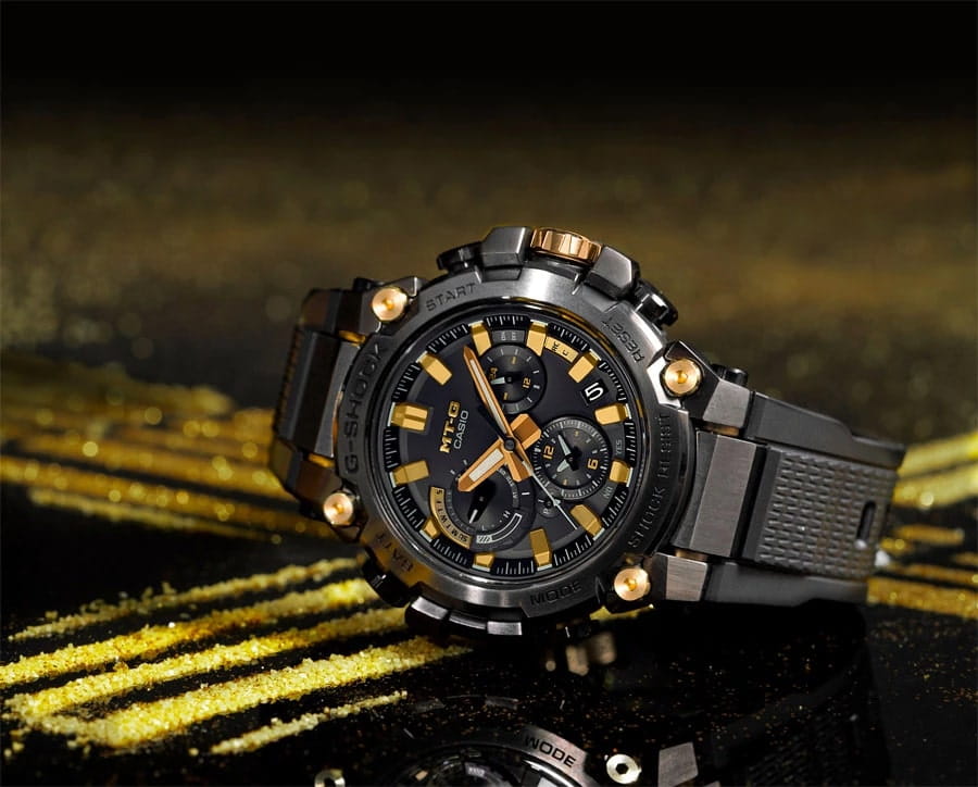 Часы-хронографХронографФункция позволяет измерять отрезки времени с особой точностью: часы, минуты, секунды. Верным признаком хронографа является наличие на циферблате 3 дополнительных окошек-счётчиков., будильник, таймер обратного отсчета, двойное время (27 часовых поясов), индикатор уровня заряда батареи, функция энергосбережения, отображение дня недели и даты с полностью автоматическим календарем и светодиодная подсветка Super Illuminator – все это включает в себя модель MTG-B3000. Bluetooth-синхронизацияBluetoothСовременная технология, позволяющая синхронизировать часы с телефоном и переносить данные. Часы с Bluetooth расширяют возможности вашего смартфона и делают его использование ещё более удобным. позволит автоматически настроить время, доступно около 300 городов мирового времени, поиск телефона, отображение состояния часов и самопроверку.
