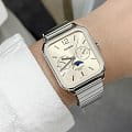 Японские мужские кварцевые часы с минеральным стекломМинеральное стеклоМинеральное стекло представляет собой искусственно выращенный минерал кварца. Такое стекло отличается особой устойчивостью к повреждениям и царапинам. Уступает по некоторым качествам сапфировому стеклу. Casio Collection MTP-M305D-9AVDF (MTP-M305D-9A), кварцевый механизм с высокой точностью. Корпус часов изготовлен из нержавеющей стали. Циферблат с метками в виде штрихов. Особенностью модели является наличие индикатора фазы луны над шестью часами по циферблату. Индикатор имеет 4 положения и отображается новолуние и полнолуние, а также растущую и убывающую Луну. Батарейка рассчитана на 3 года. Класс водозащиты: 50 метров, позволит защитить корпус от случайных брызг или капель дождя. Стальной браслет на раскладной застёжкеРаскладная застёжкаТакой тип застёжки используется только на браслетах из металла. Она никогда не раскрывается полностью, происходит разделение на 2 и более частей. Раскладывающая застёжка снизит вероятность потери часов к минимуму..