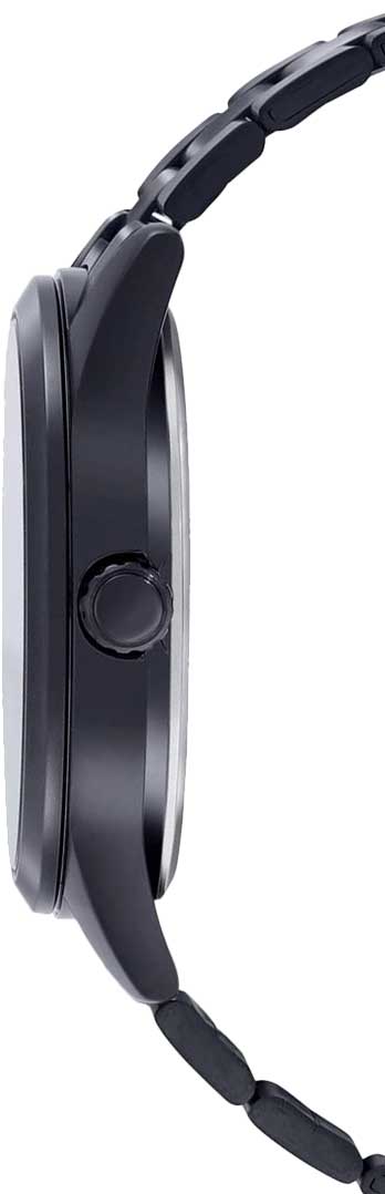 Аксессуар в строгом черном исполнении никогда не утратит актуальности, он будет прекрасным дополнением к классическому костюму, спортивной футболке, модных джинсах. Компактный циферблат выполнен в минималистичном стиле, с метками в виде штрихов. Контрастные стрелки и метки хорошо видны на его фоне. Браслет с IP-покрытиемIP-покрытиеМетод ионного напыления. Демонстрирует повышенную устойчивость к истиранию, окислению и химическим веществам. Под воздействием высокого давления и температуры около 1500°C молекулы металла надёжно соединяются с частицами корпуса часов. черного цвета. Высокоточный кварцевый механизм.