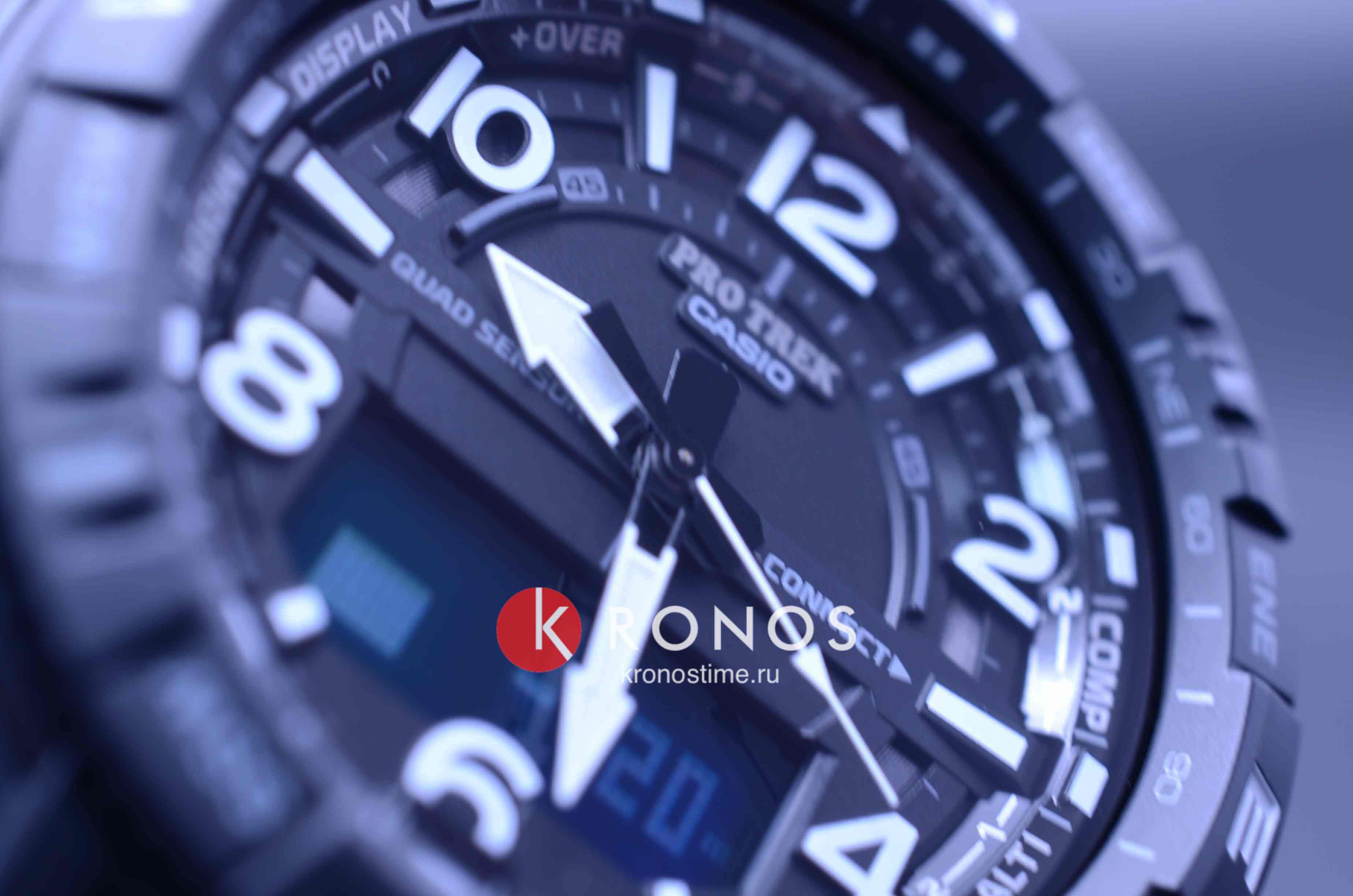Аксессуар представлен в спортивном стиле, внимание привлекают угловатые детали и крупные габариты. Наручные часы в черной стелс-расцветке оснащены множеством функций, необходимых для активного времяпрепровождения на природе, решения повседневных задач. Это термометр -10°C /+60°C, компас, барометр, график восхода и заката солнца, высотомер, мировое времяМировое время Полезное часовое усложнение, отображающее время в основных городах и известных областях по всему миру, оно связано с часовыми поясами, удобно для путешественников и бизнесменов. , шагомер, хронографХронографФункция позволяет измерять отрезки времени с особой точностью: часы, минуты, секунды. Верным признаком хронографа является наличие на циферблате 3 дополнительных окошек-счётчиков., будильник, календарь. Японский кварцевый механизм с точностью хода -/+15 секунд в месяц получает питание от батарейки, рассчитанной на 2-летний срок службы. Ударопрочный корпусУдаропрочный корпусМеханизм заключён в корпус, выполненный из современных материалов, устойчивых к ударам, механическим повреждениям и падению с высоты: инновационный пластик, карбон, нержавеющая сталь, титан. сделан из полимера, идеальным дополнением к нему стал титановый браслет с IP-покрытиемIP-покрытиеМетод ионного напыления. Демонстрирует повышенную устойчивость к истиранию, окислению и химическим веществам. Под воздействием высокого давления и температуры около 1500°C молекулы металла надёжно соединяются с частицами корпуса часов.. Электролюминесцентная подсветкаЭлектролюминесцентная подсветкаЭлектролюминесцентная панель устанавливается под ЖК-экраном часов, при нажатии кнопки электричество преобразуется в свет за счёт подачи напряжения на атомы фосфора, такой тип подсветки позволяет освещать весь циферблат. освещает дисплей, светодиодСветодиодная подсветкаСветодиодная или LED-подсветка обеспечивает появление яркого холодного свечения за счёт LED-элементов - маленьких лампочек. Они потребляют минимальное количество энергии, чаще всего можно встретить 1 светодиод, в нижней части циферблата. применяется для циферблата. Минеральное стекло защищает циферблат от повреждений, отличается устойчивостью к царапинам. Класс водостойкости – WR 100, часы подходят для плавания. Габариты: 57,5 x 50,8 x 15,8 мм.